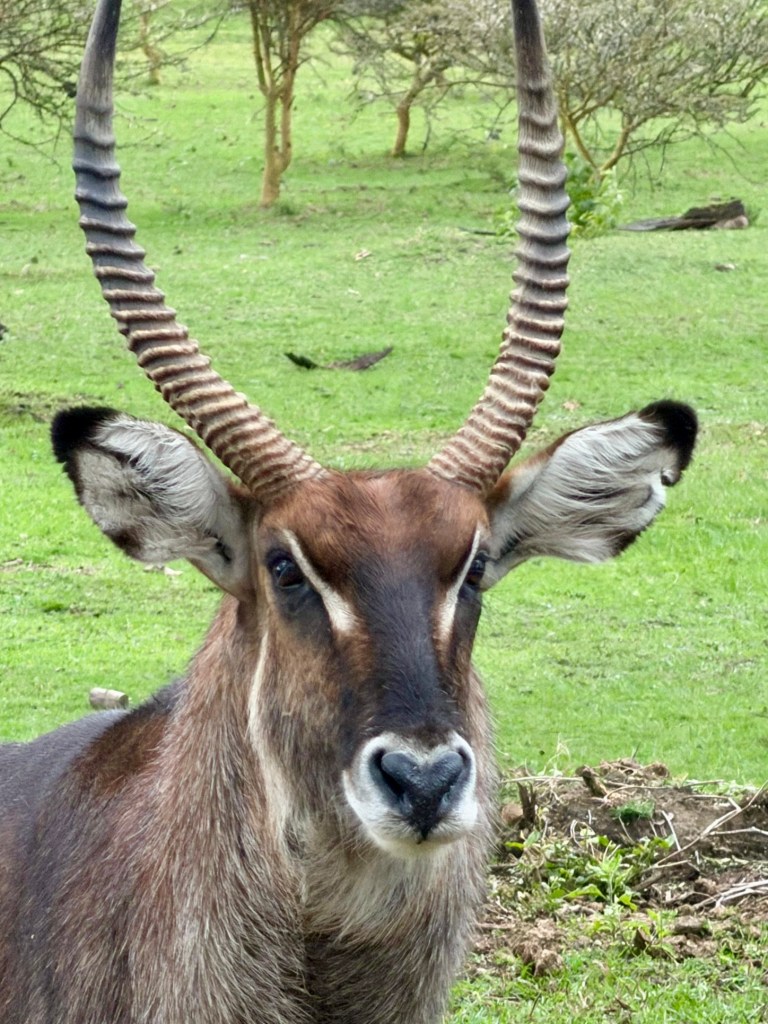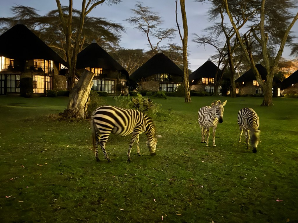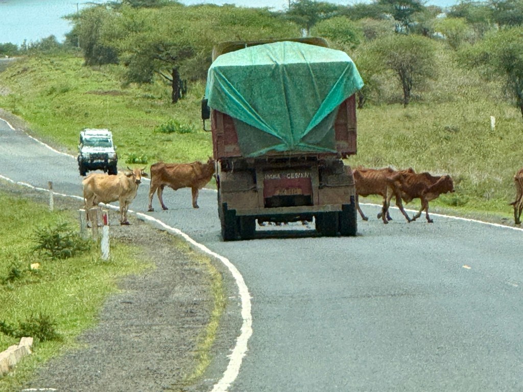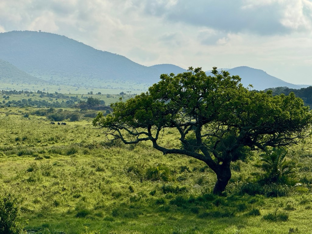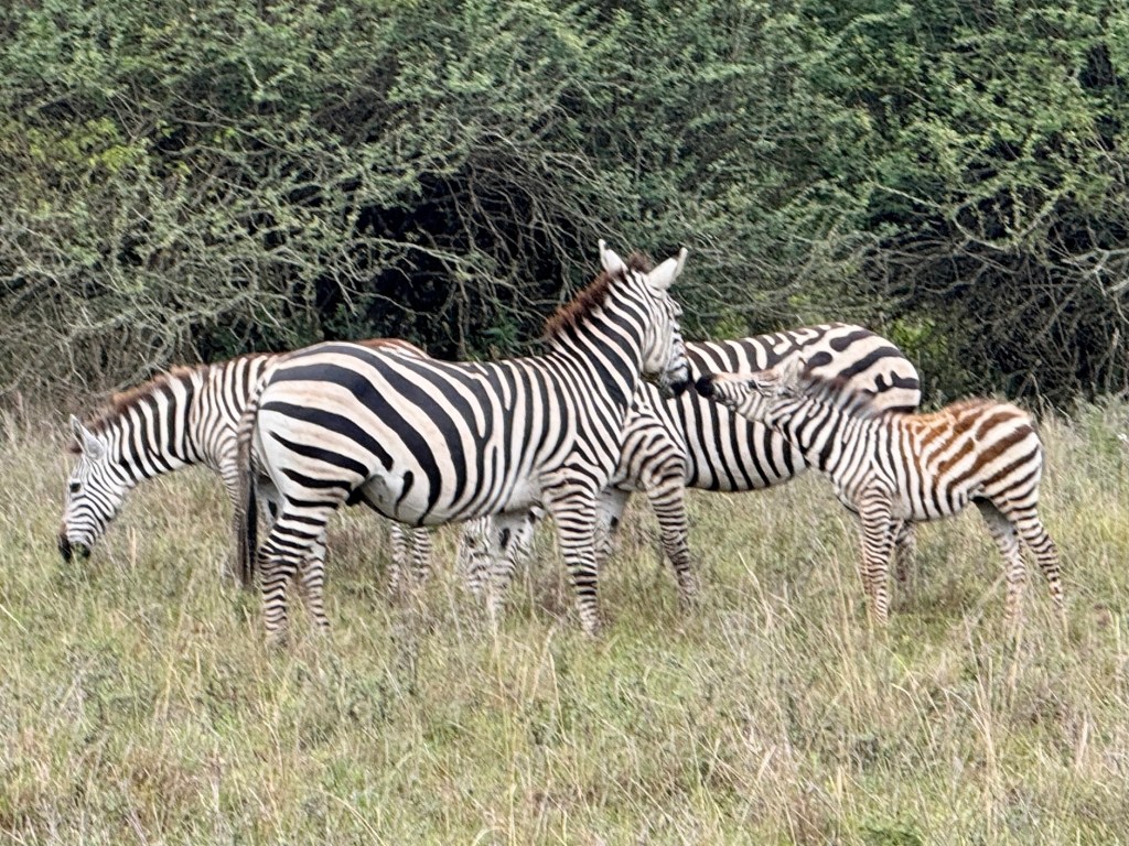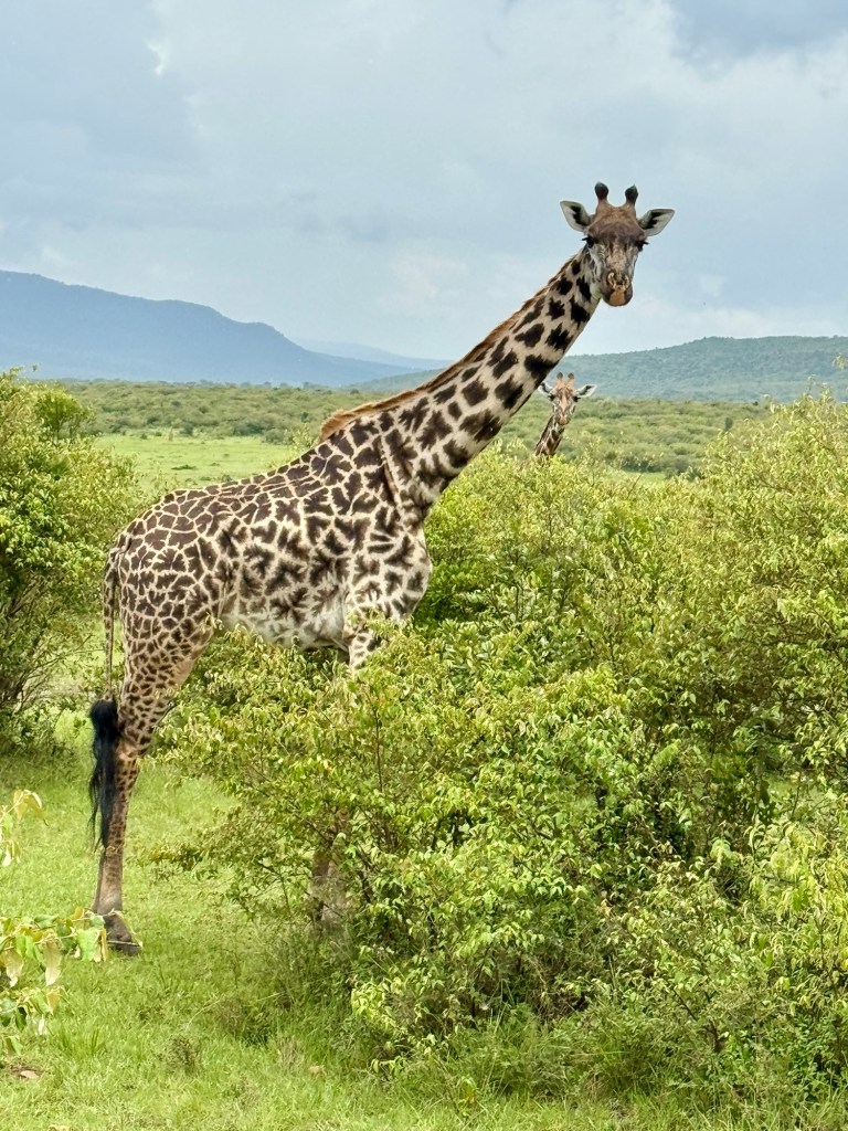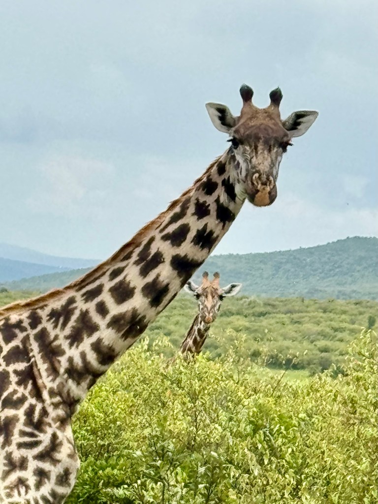 We were on the flat part of the savannah with foothills in the background and had our daily intake of giraffes, zebras, antelope, and gazelles.