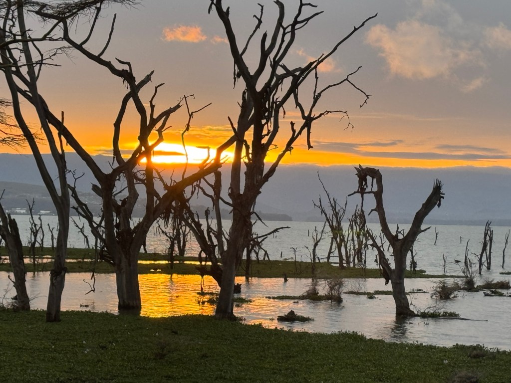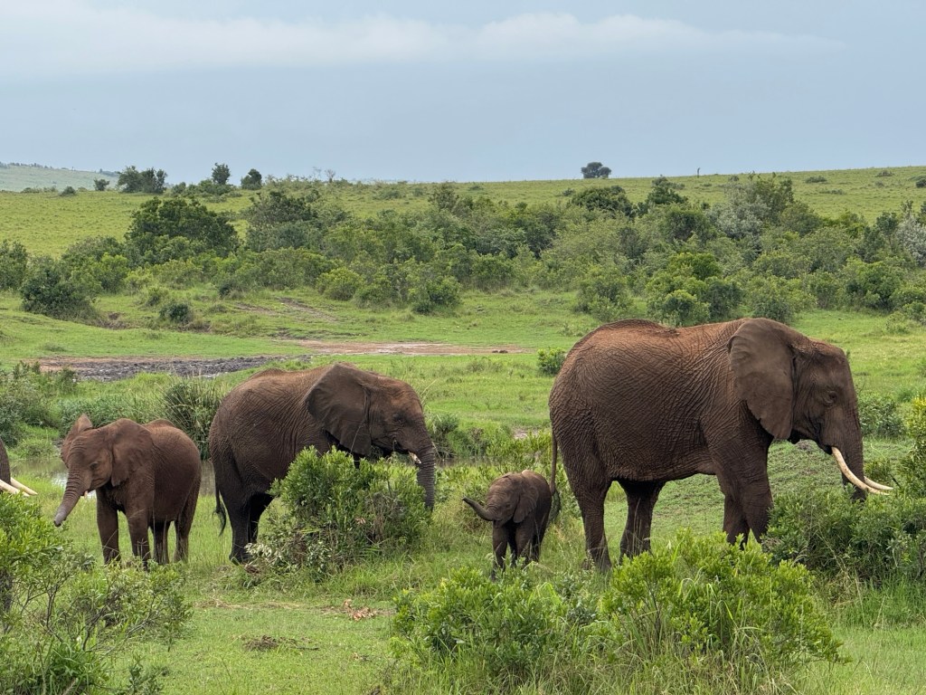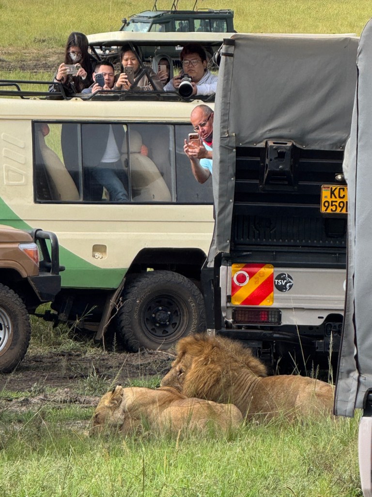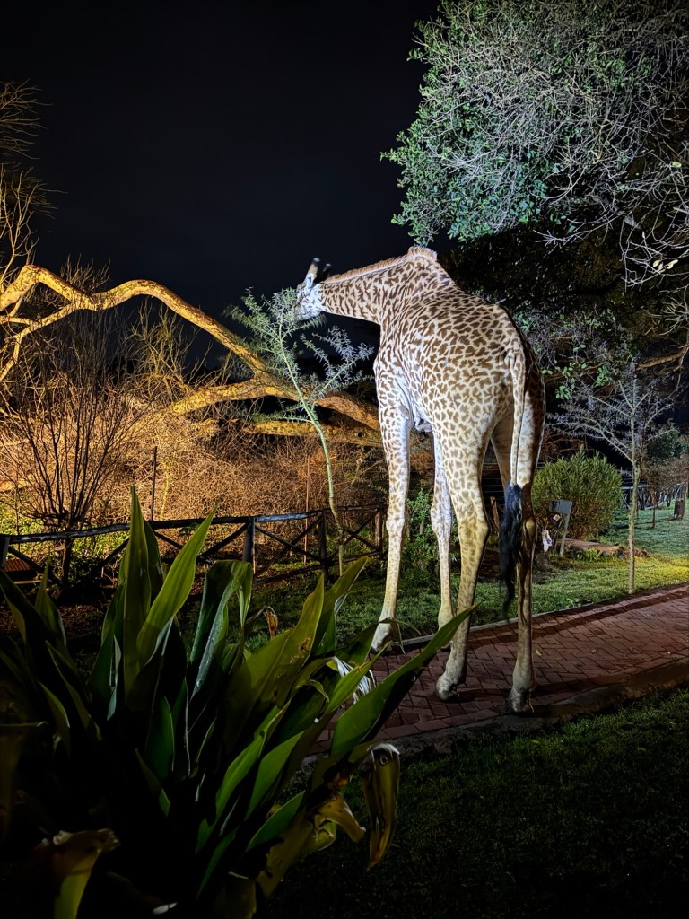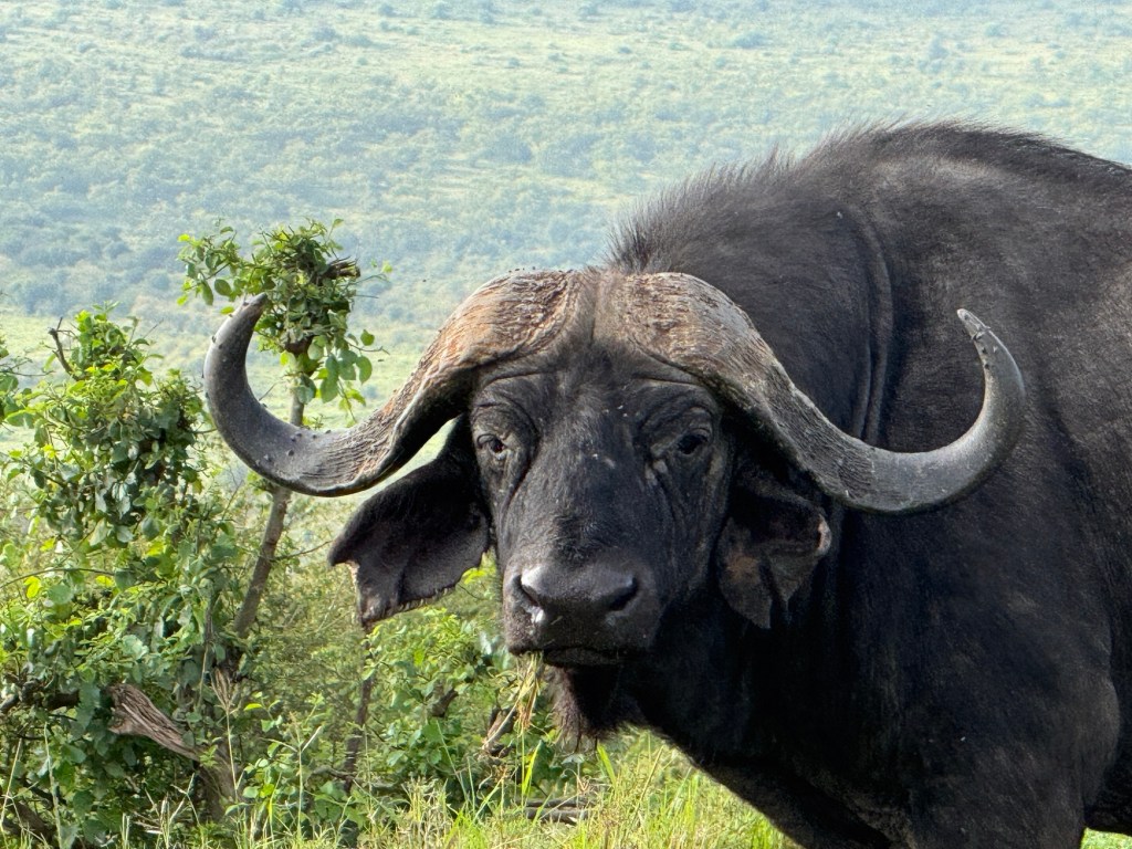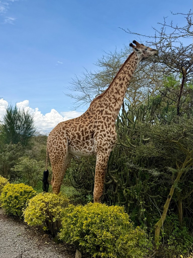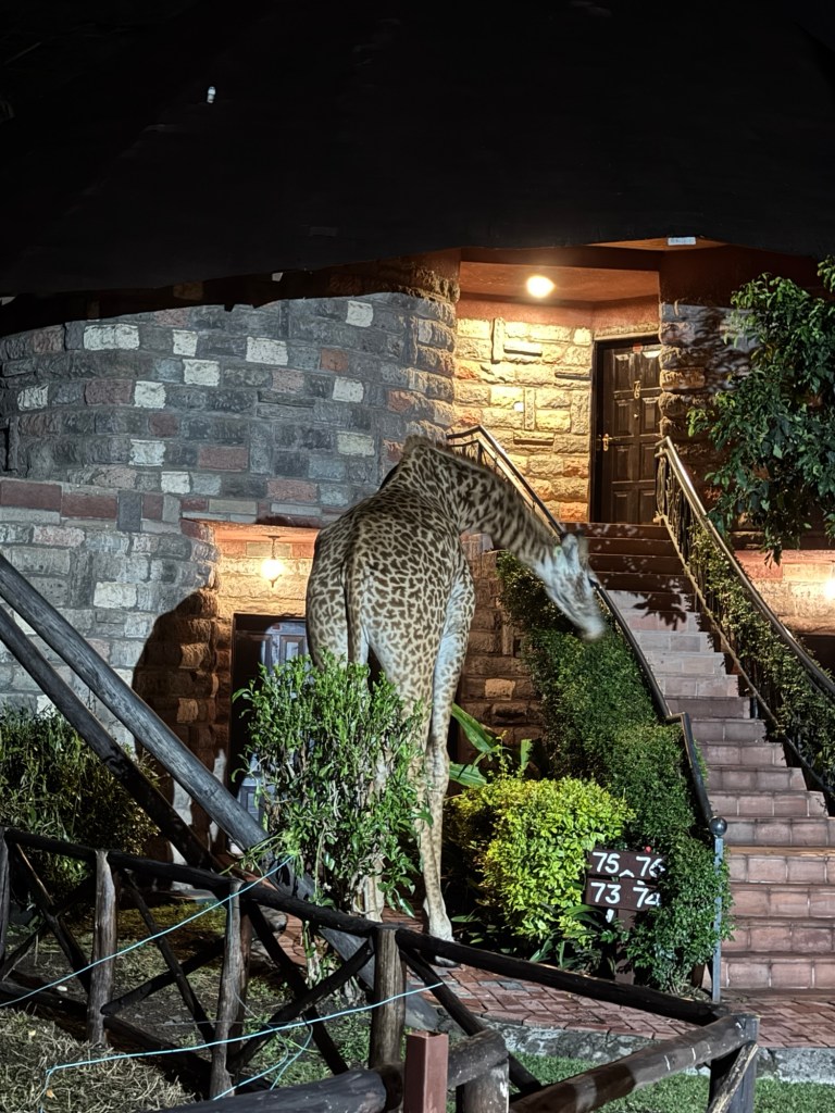 We were on the flat part of the savannah with foothills in the background and had our daily intake of giraffes, zebras, antelope, and gazelles.