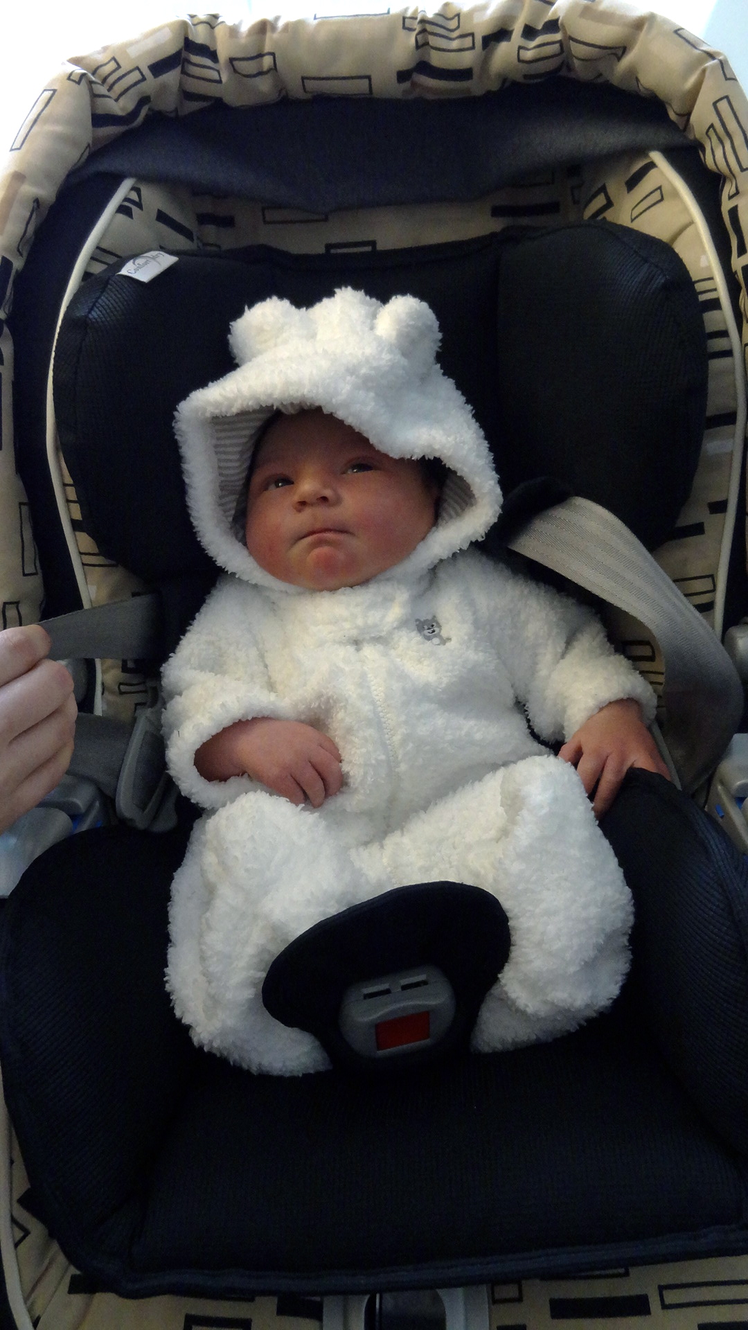 Just then the nurse arrived to do the required carseat check. When she finished she said," Good luck to you. He's really cute….and I don't say that to all the parents."