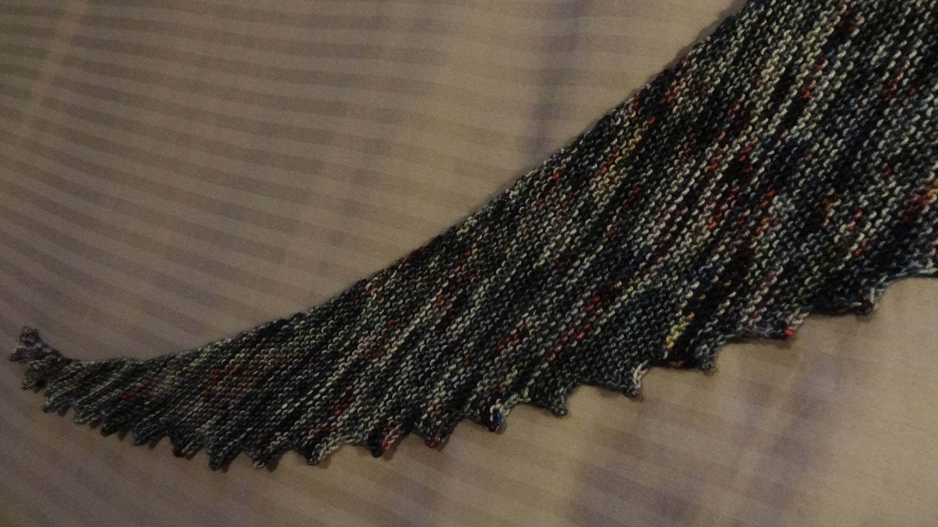 Thoughts: Again, I think the design is brilliant. Very easy pattern produces super sproingy fabric in an interesting shape, when knit in sockweight yarns like Cherry Tree Hill, Wollmeise, Koigu, Claudia Hand Paints, Colinette Jitterbug, or anything made from a Louet gems type yarn. Don't worry, even the sock yarns with under the required amount of length makes an acceptable drapey scarf. This one ended up with 33 points instead of the pattern's 41. That's about as small as I'd recommend for this pattern.
