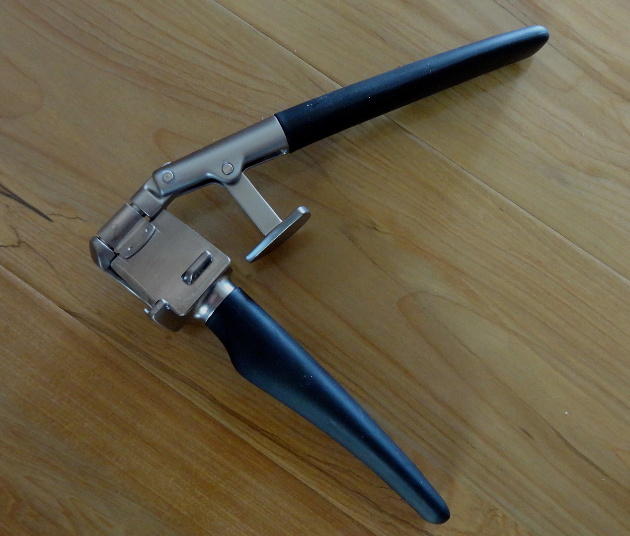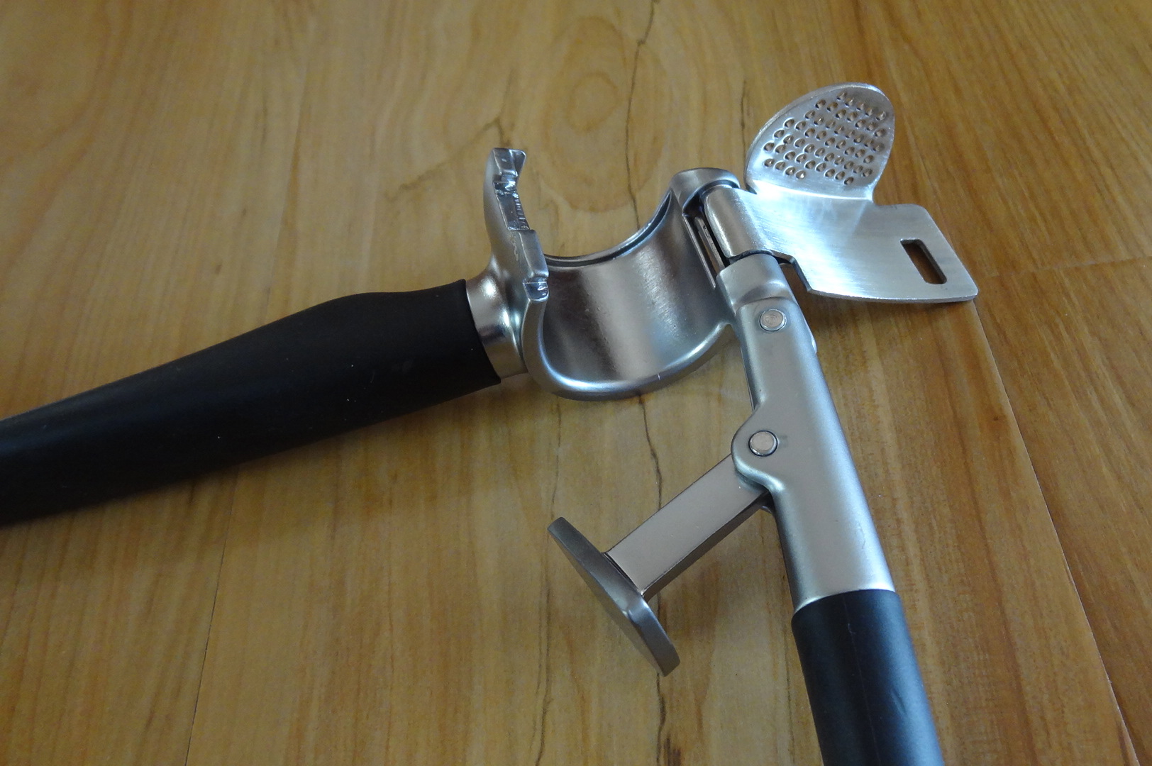 It's an uncoated aluminum free, large capacity garlic press that works effectively, and the piece de resistance – a little door that opens flat making cleaning a breeze. No longer do you have to keep track of that little plastic cleaning tool included with the presses mentioned above. Could it get any better? Yes, the price. It's $5 cdn.