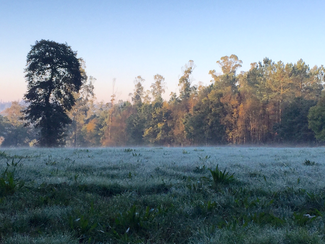 Last night the address was technically still in Arzua, but it was quite a ways from town. We walked 1k to get back on track and once we did, we saw dewy fields at 9:00a.m., shortly after the usual astonishingly late sunrise.