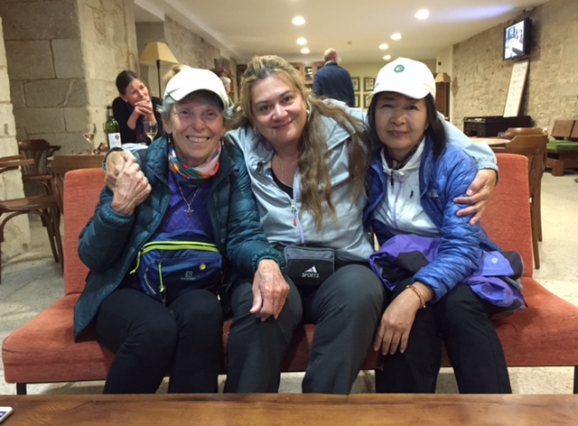 We took a break at 10:30 p.m. to see who we might find in the pilgrim lounge and that's where we met Alexandra, from Idaho, putting us all to shame at 75 years old. Next to her is Liliana from Colombia, whose uncanny story was in yesterday's post. Their friend on the end is from Korea. They had hiked together for many days. This is the kind of eclectic trio that the Camino encourages.