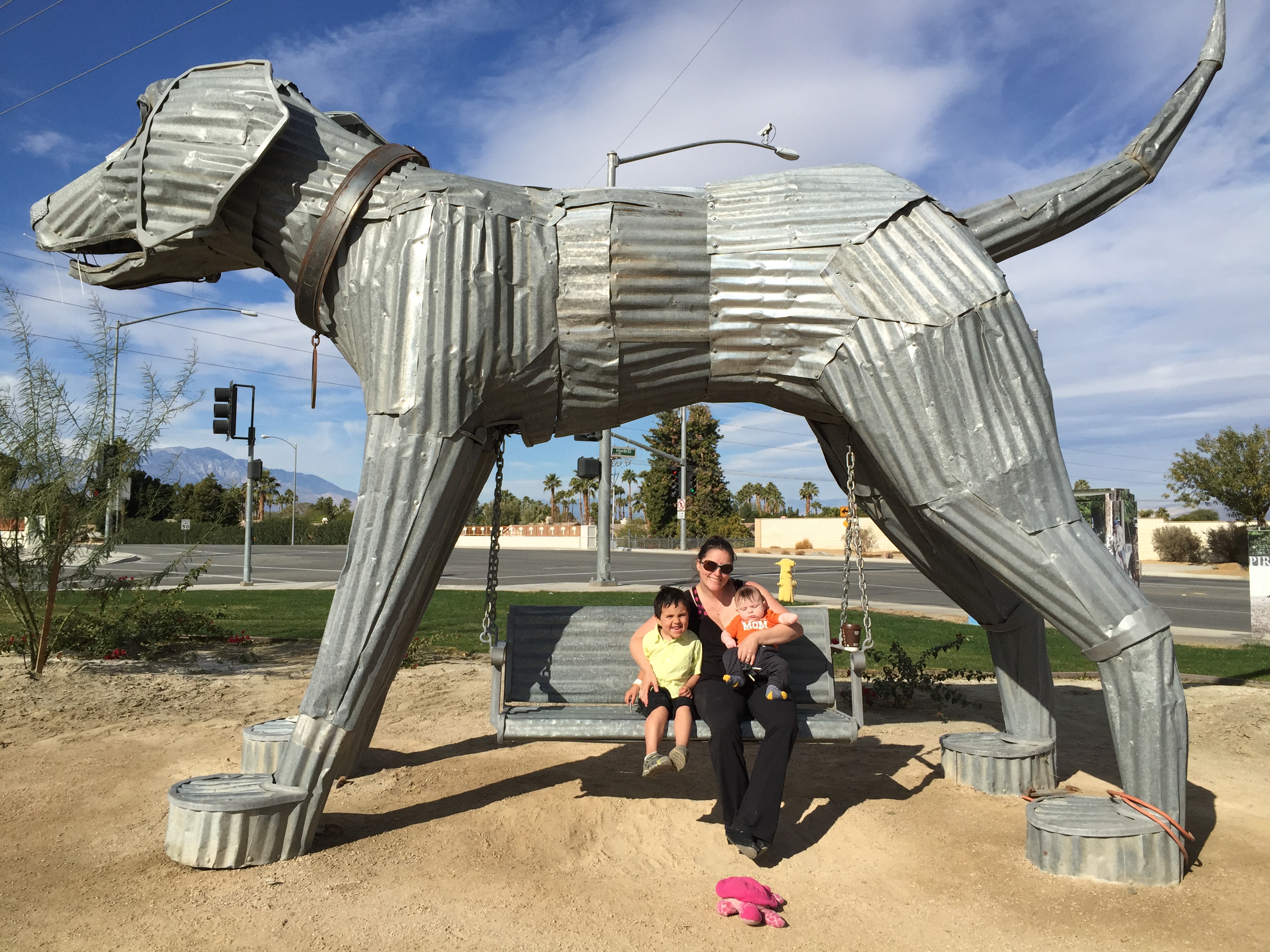 As for the giant canine variety, daughter Elina and grandsons, Rye and Parker, and I visited the Yard Dog sculpture located nearby our place in the Coachella Valley, the antithesis of long and close to the ground: