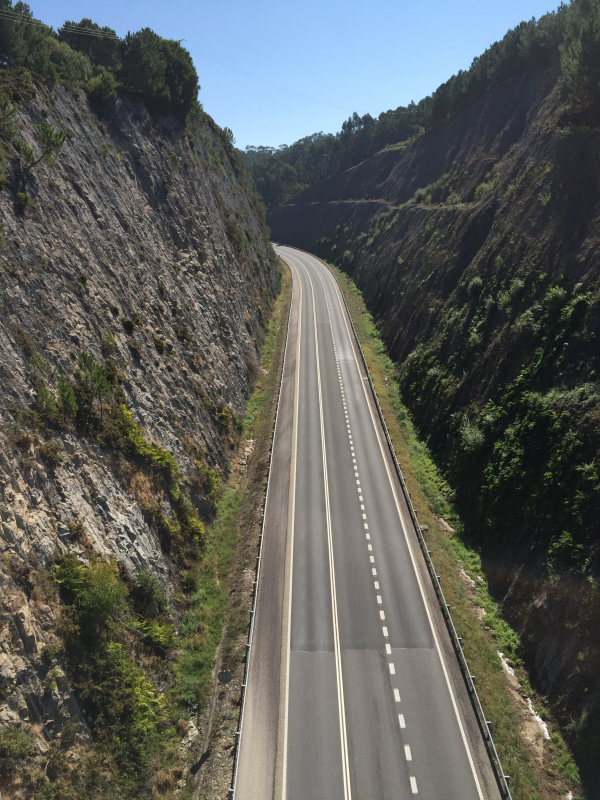 The hills/mountains looked like huge rock piles. I can't imagine the blasting that had to be done to build this road: