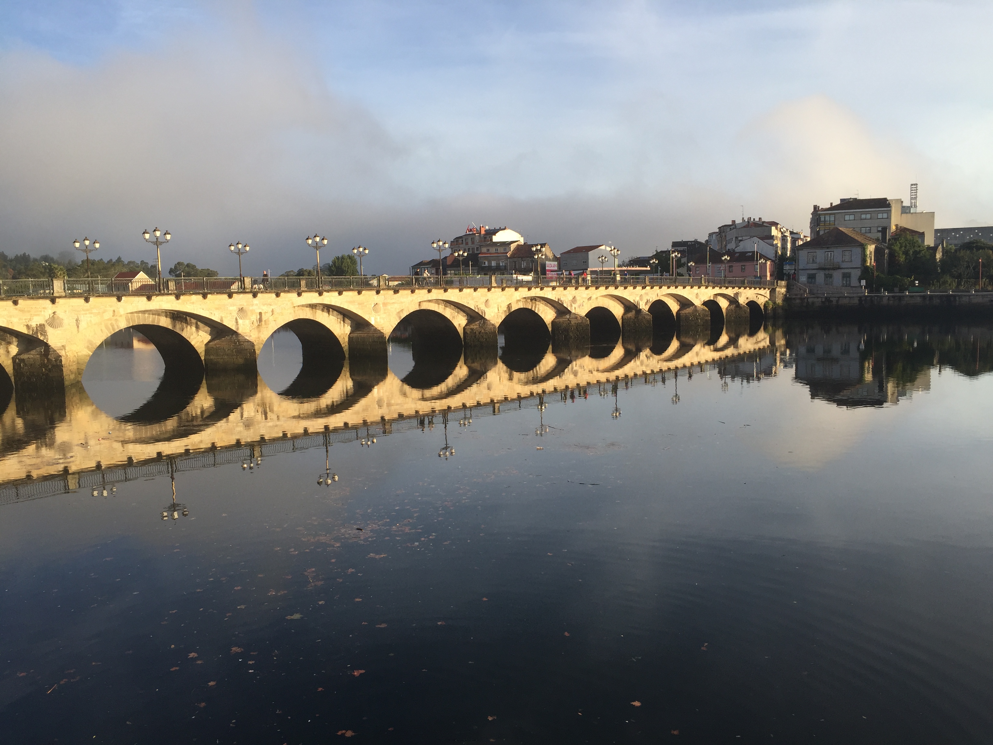 Today's walk started by crossing over Pontevedra's replica Roman bridge, still old, near the original foundations.