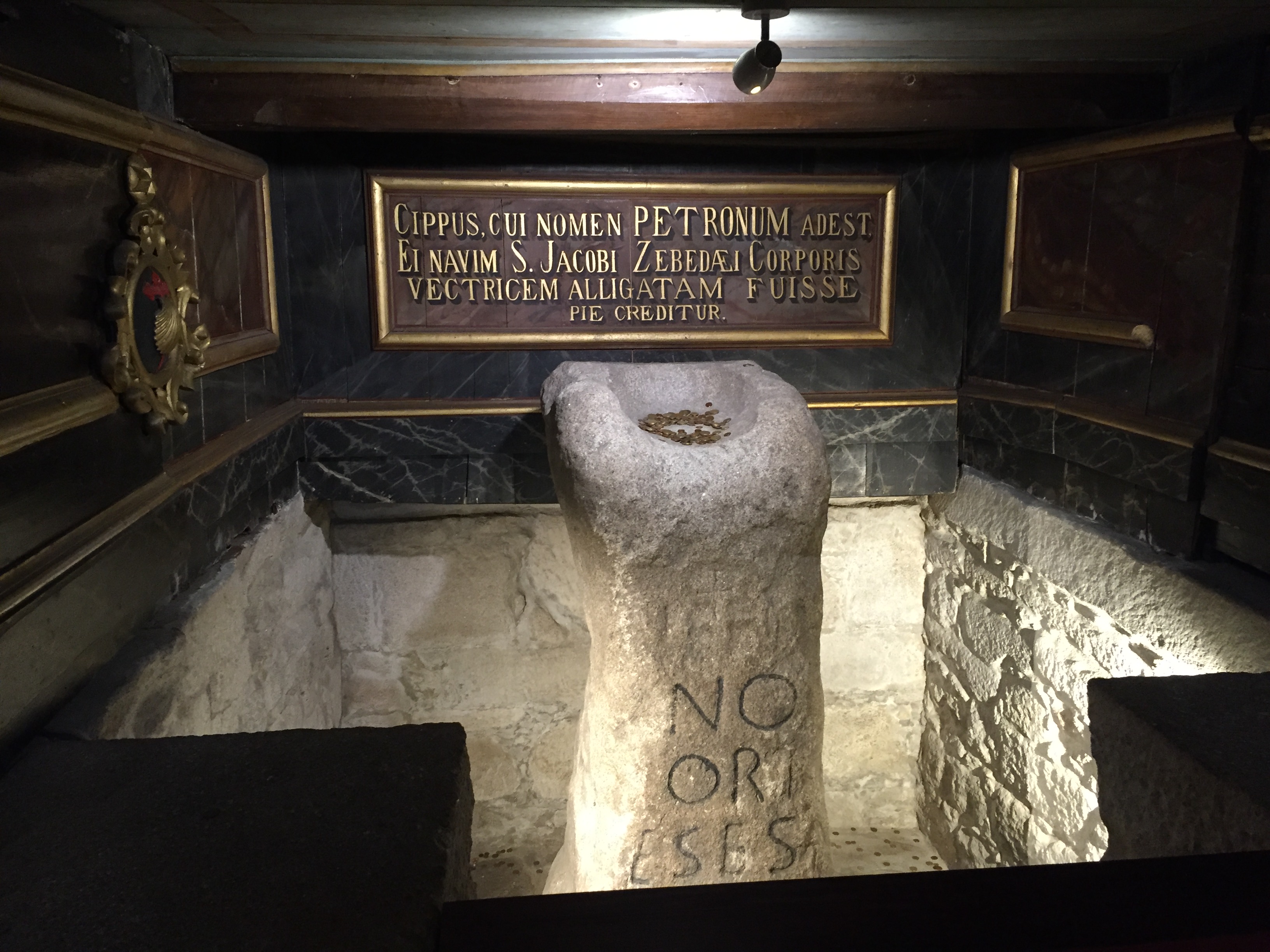 Then we visited the church that houses the rock to which St. James' (for whom the Camino de Santiago was named) boat was tied when he came to Padron to preach.