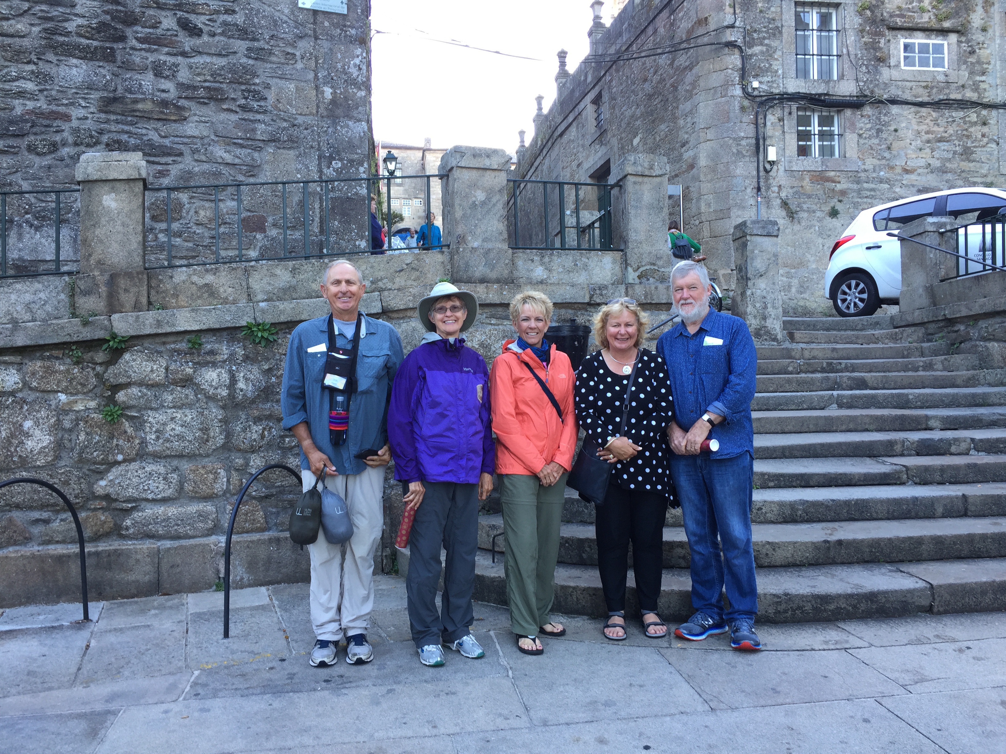 We headed to the Pilgrim's Office to see if we could say goodbye to Camino friends met along the way. Sure enough there was Moira, Julian, Harlan, Karen, and Jo, the Aussie/US contingent, the two in their civvies hardly recognizable.