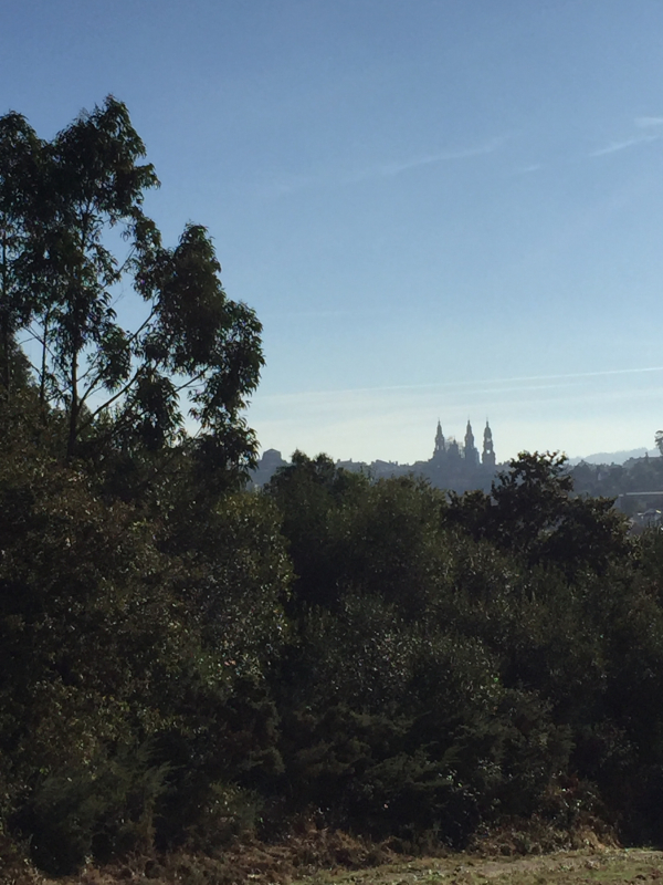 This is tougher terrain hill-wise. First was a steady uphill climb out of Santiago. Remember those steep hills we encountered earlier on? Double those stats, halfway through today there was a 220 meter ascent over 2k. And it was a humid 27 Celsius.