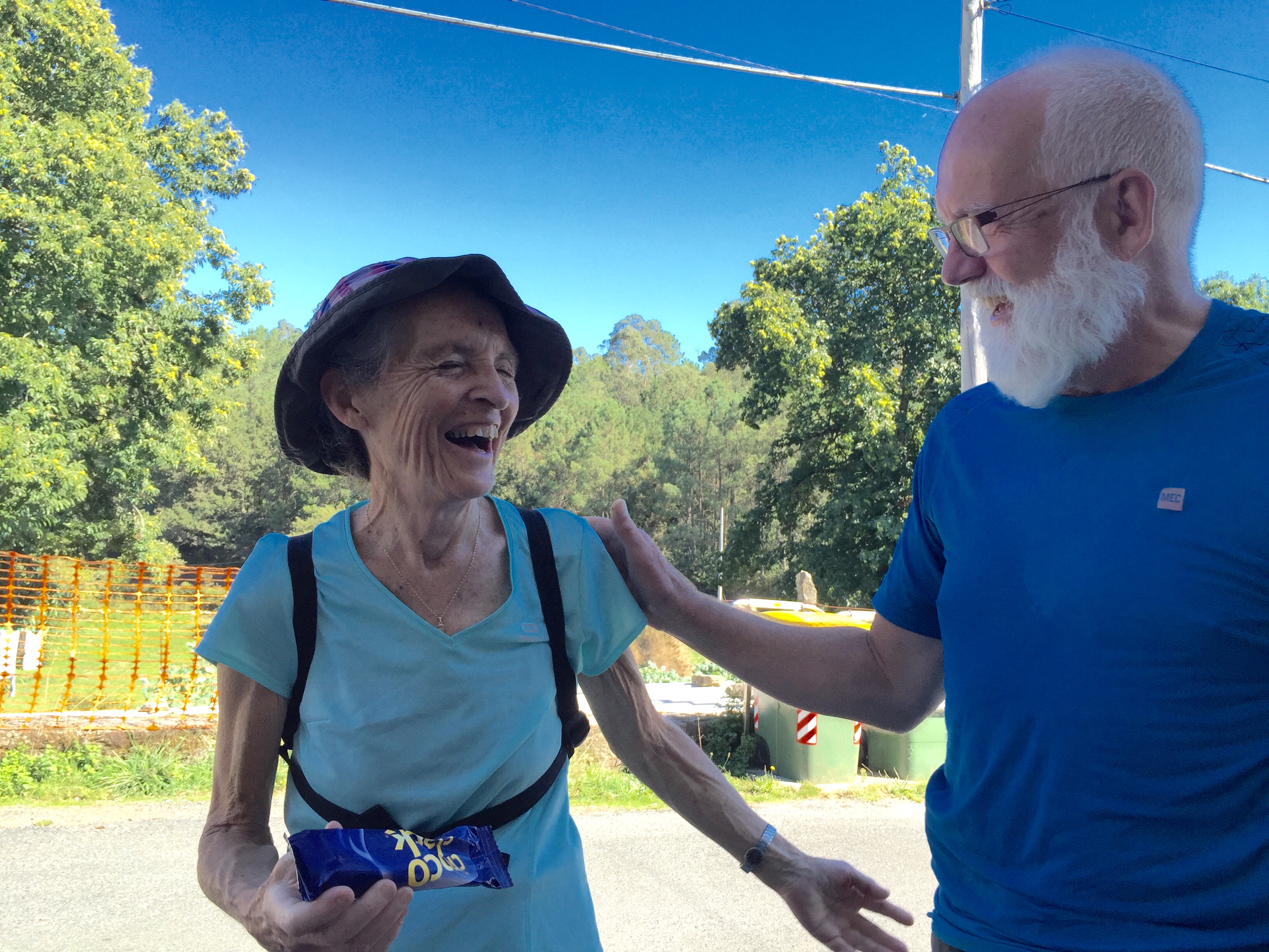 Earlier we had seen a man lying on the ground in distress, shortly after Santiago. He asked if we had medical backgrounds. A German couple was able to communicate with him. His hiking companion, a former colleague, arrived after seeking help from a nearby house.
