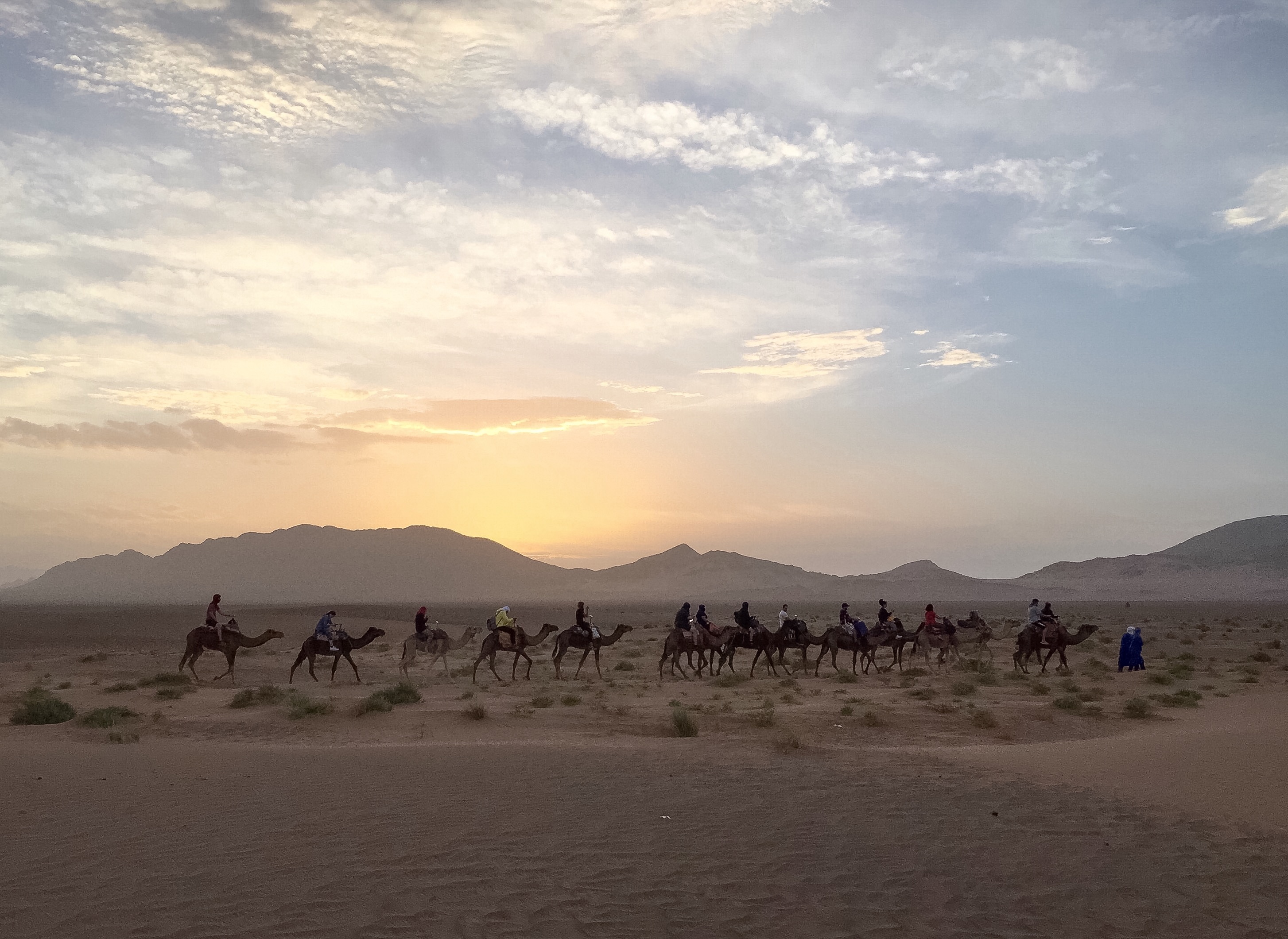 The staff were quite efficient at rounding up people and beasts. They have lots of experience in the desert. Heard our guide last night say he was born and grew up on the Sahara, part of a nomad family. Now he's working at camp with plug ins for cell phones.