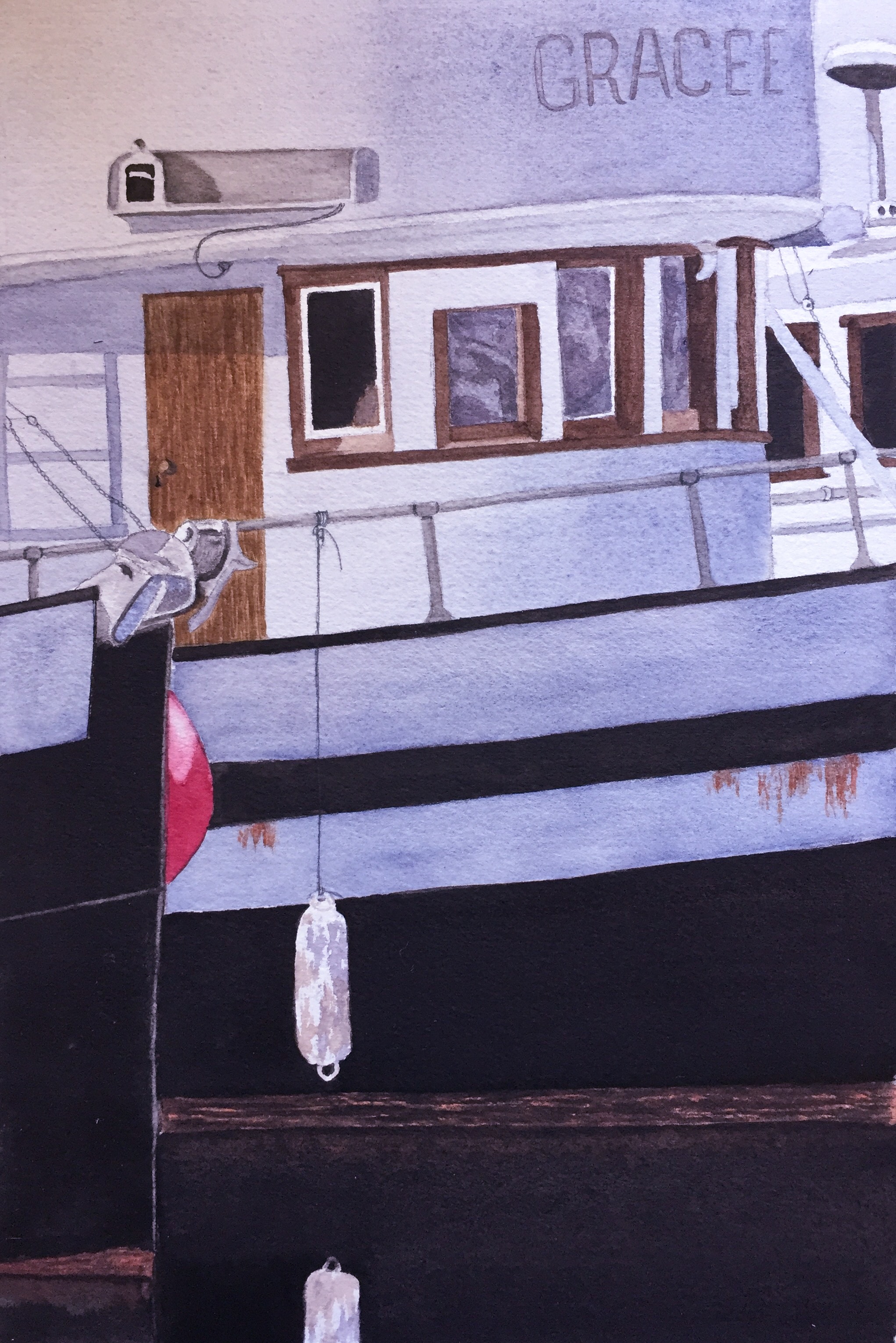 A recent Saturday watercolour subject were the hulls of old rusty fishing boats, one name meaningless to our family, so I changed it: