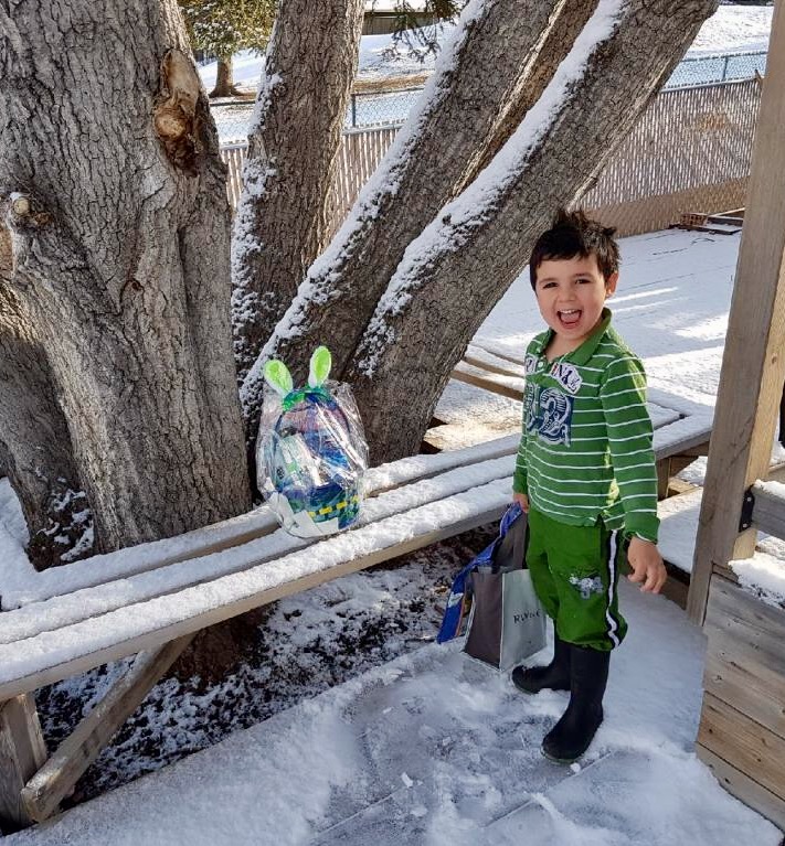 Who would have expected a white Easter? Certainly not me, the British Columbian weather wimp, but apparently there can be snow during any month in Alberta. There was no stopping grandson Rye from his search: