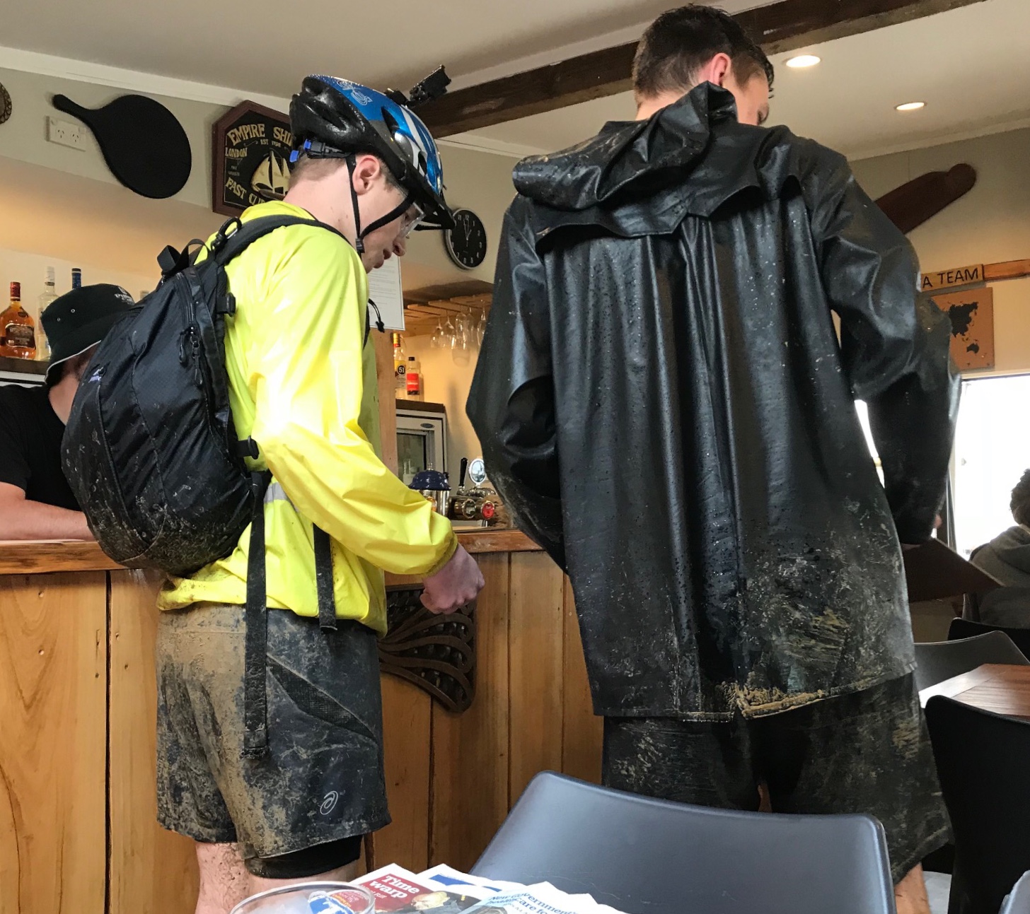 There were, however, five cyclists who pushed through, covered in mud when they stopped for lunch at Punga cove. I thought of the couple we met yesterday who were camping last night and planning on hiking today. Hope they found a dry spot along the way to sit out the bucketing rain.