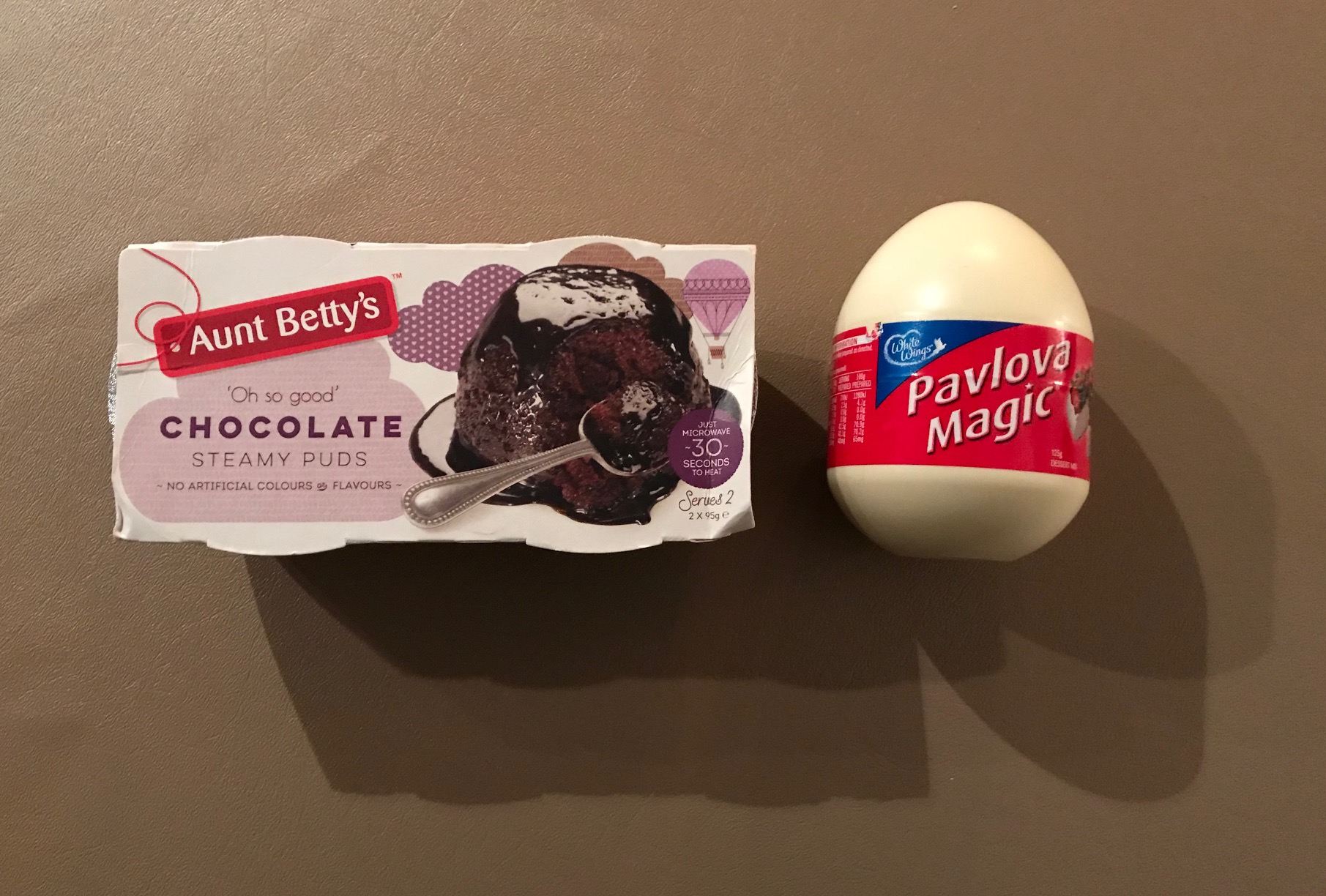 It was a glorious last day of vacation in Australia. We stopped in the grocery store to pick up a few souvenirs and gifts. I usually go for local spices, but this time it was the failproof Pavlova mix-in-an-egg and for the chocolate lovers in my life, some "Aunt Betty's Oh So Good Chocolate Steamy Puds."