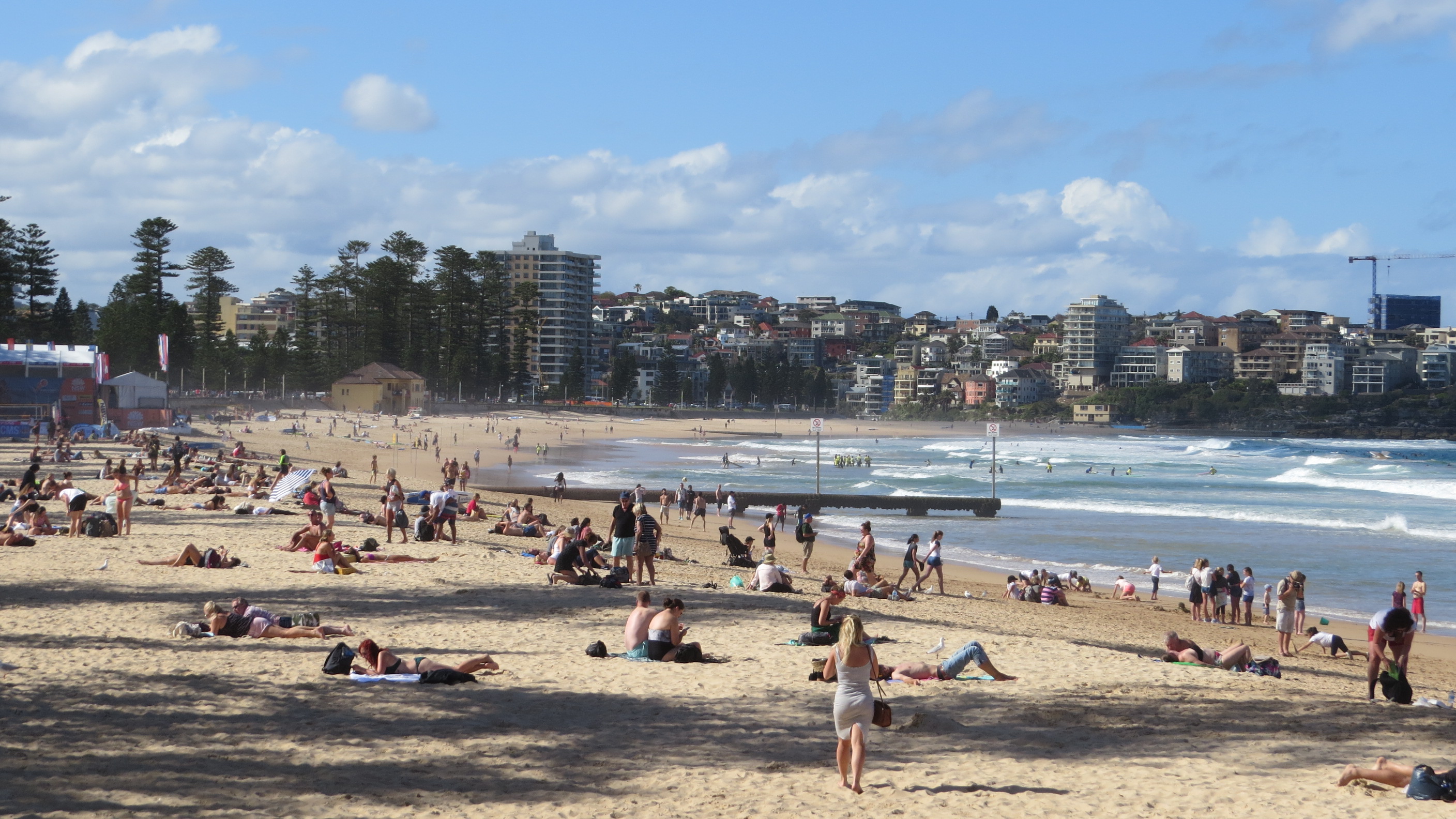 Upon arriving at the Manly Beach ferry terminal, I saw a small horseshoe shaped beach. This is pretty I thought, but wondered what made it so special. I looked down the next street and discovered what we were really looking for, a few blocks away – beautiful huge surfer's paradise Manly Beach.