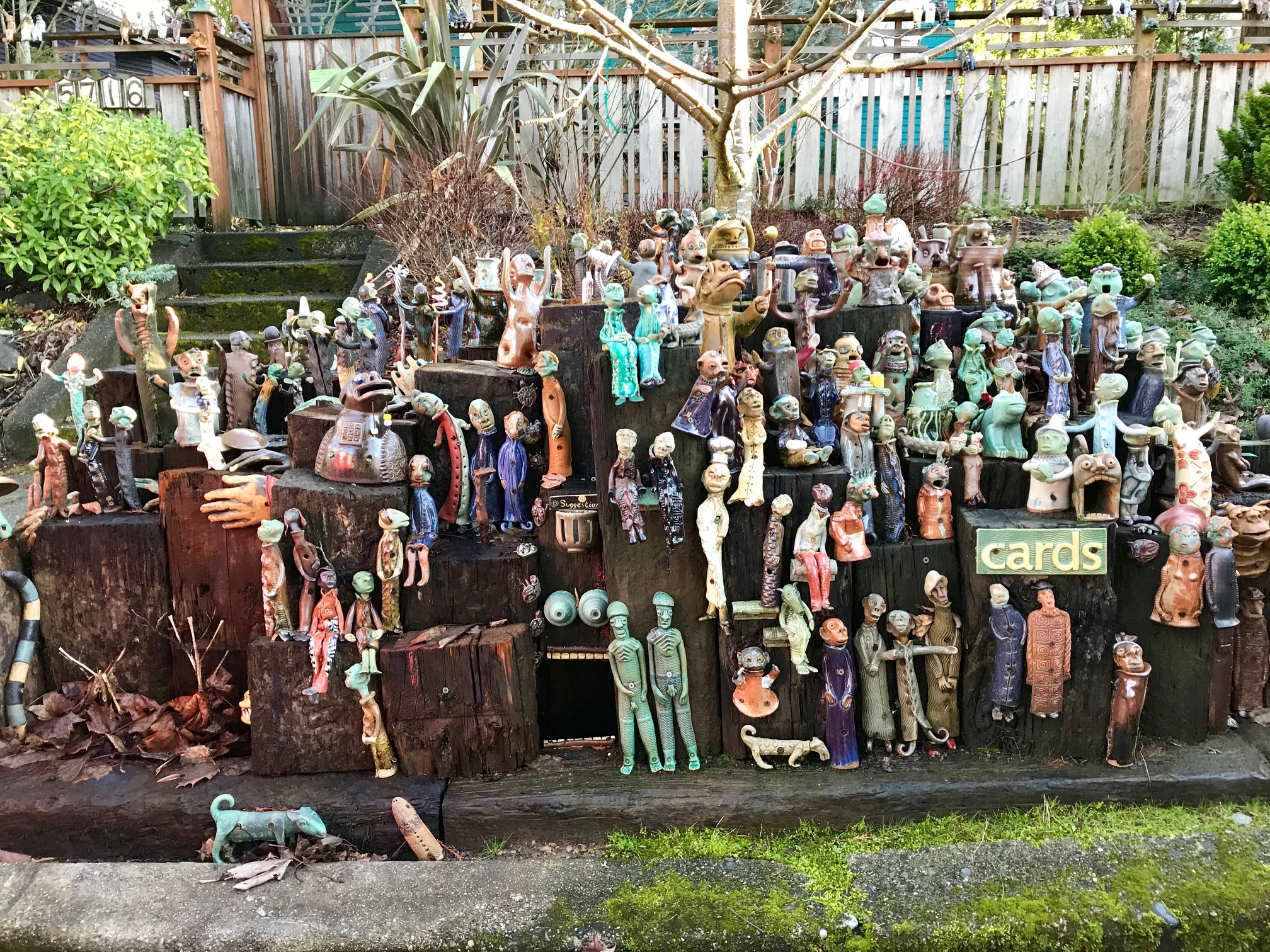 I spent the night with M & D, enjoying good food, wine and conversation. On yet another beautiful sunny rain-free morning M indulged my geocaching craving. In her neighbourhood we discovered the "Trollboth cache," one of the best I've seen. Spoiler alert: the cache was cleverly placed inside the mouth at the bottom of the structure.