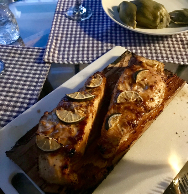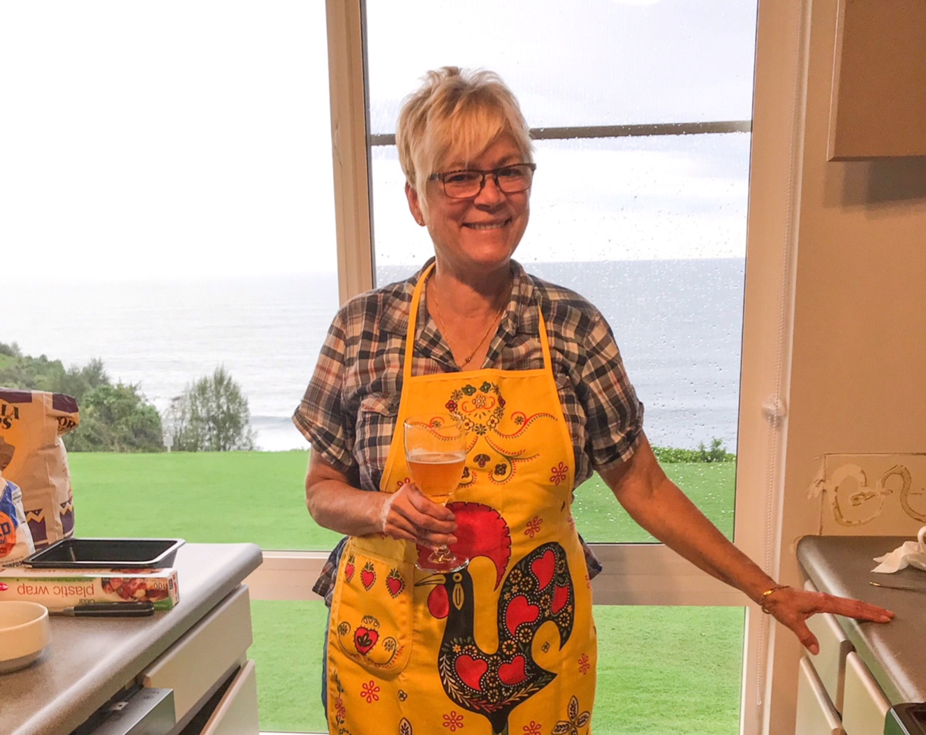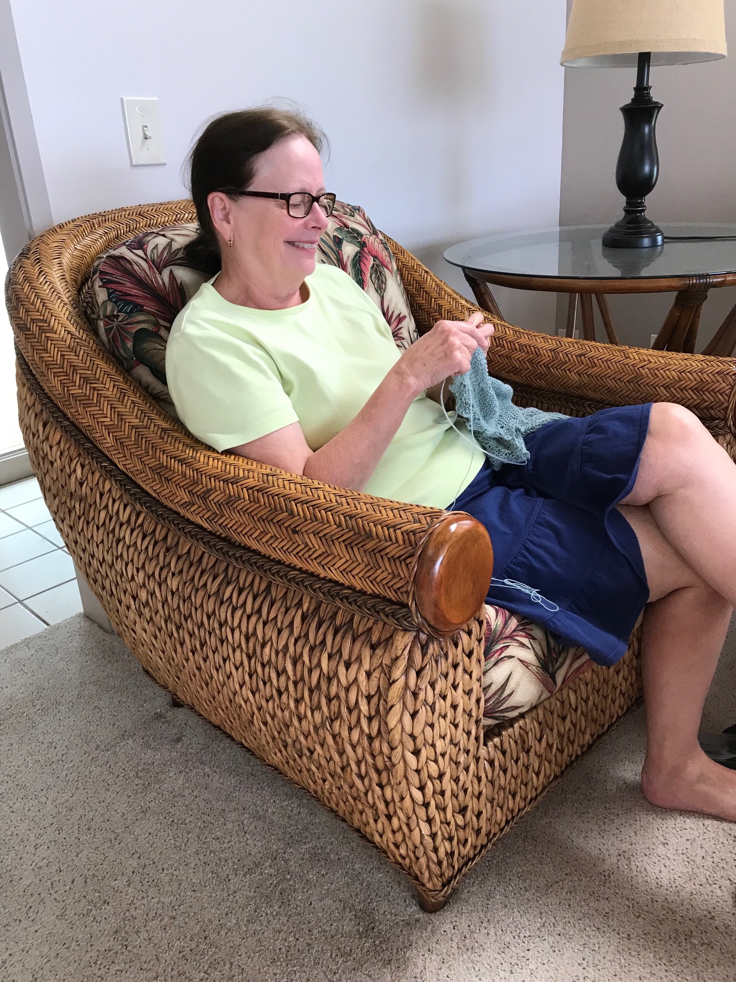 What an opportunity – a break from colder than usual weather, Marsha knitting in a stockinette stitch chair and me, cooking in the kitchen with that magnificent view. Then and now: