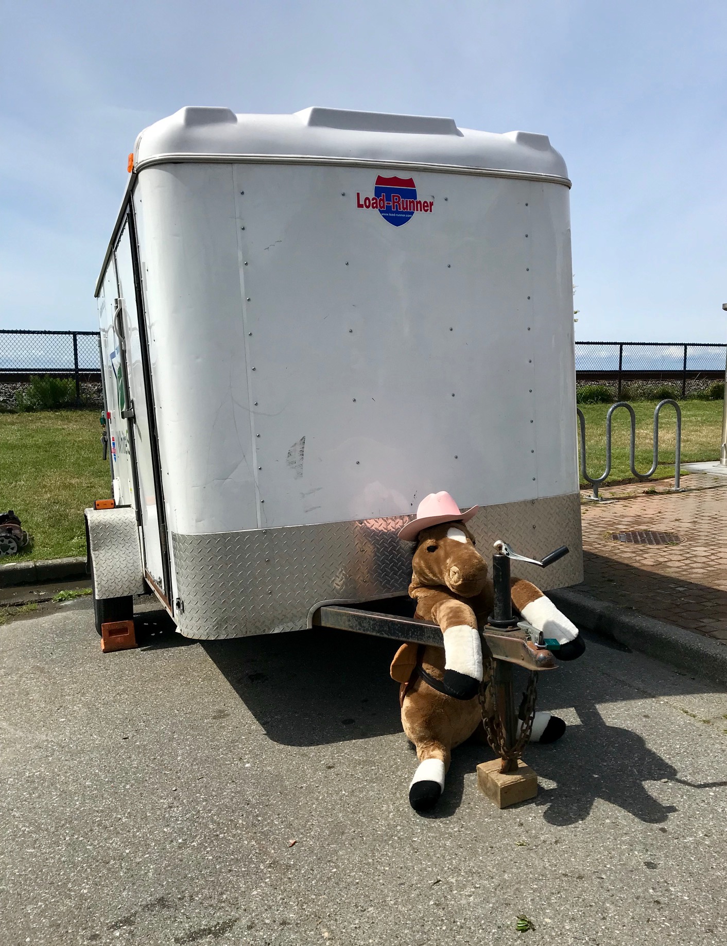 On the seawall was a landscaper with a sense of humour, displaying his stuffy with a pink cowgirl hat after parking his trailer. I'll include a photo lest your imagination wander to darker regions.