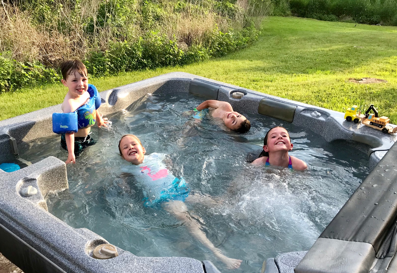 More fun in the water. Those kids are growing so quickly – Grandsons Rye, 6 and Parker, almost 3, with some of the cousins: