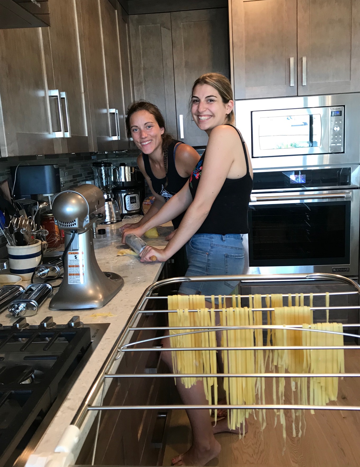 Back to the two P's – pasta and pavlova. Last week we had a houseful, including two surprise arrivals, SIL KC and prodigal son, Bryant. M's high school friend joined the fray and M gave us a lesson in homemade pasta, using my free KitchenAid mixer and eBay pasta set.