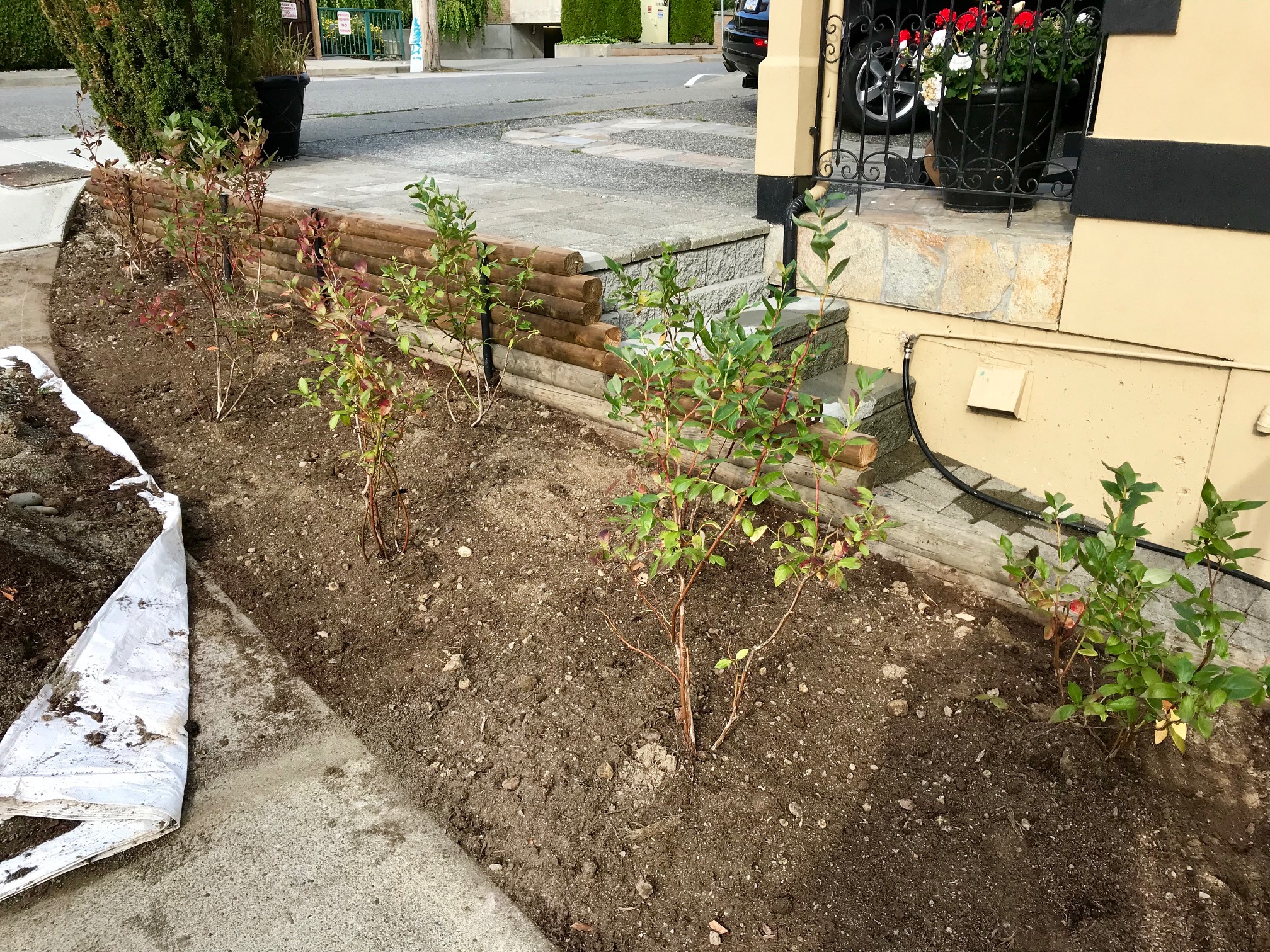 Our new house, replete with three strips of plantable dirt, renewed the fruity song in my soul. I’ve opted for a blueberry problem. My neighbour says, sure you’re going to have a blueberry problem, it’ll be keeping out the birds and raccoons. Not to be deterred, Chuck and BIL Greg, humoured me with their hard work.