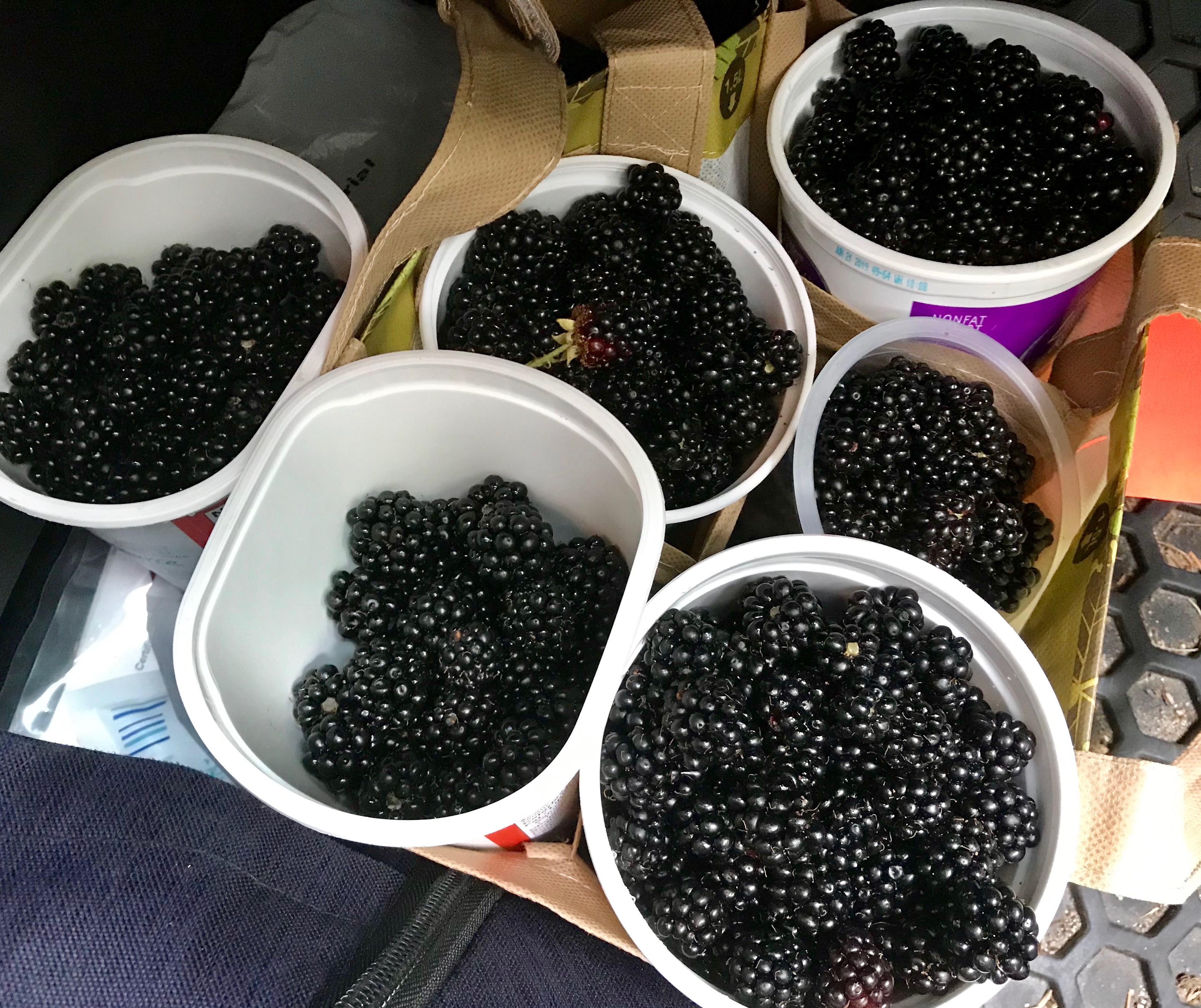 This week we found comfort in a simple task – berry picking. It’s blackberry time in the Pacific Northwest. They’re sweet and juicy and the air is scented with fruit fermenting on the vine. I find their flavour heavenly, but the seeds annoying. Our solution is an amazingly simple seedless jam, made of three ingredients: berries, sugar and lemon juice.