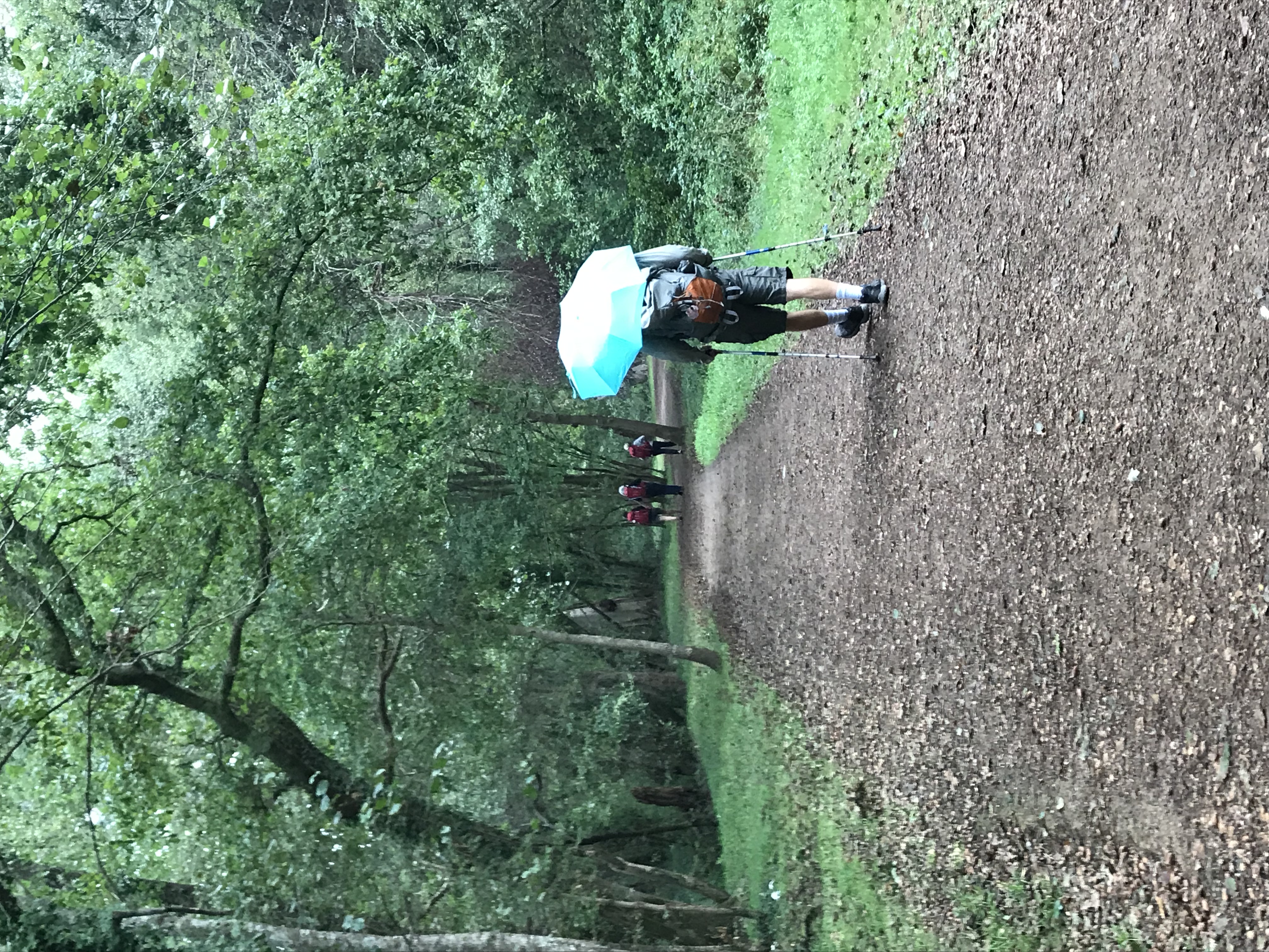 We walked in heavy, misty, drizzly conditions, through a park, forest and some rural residential areas.