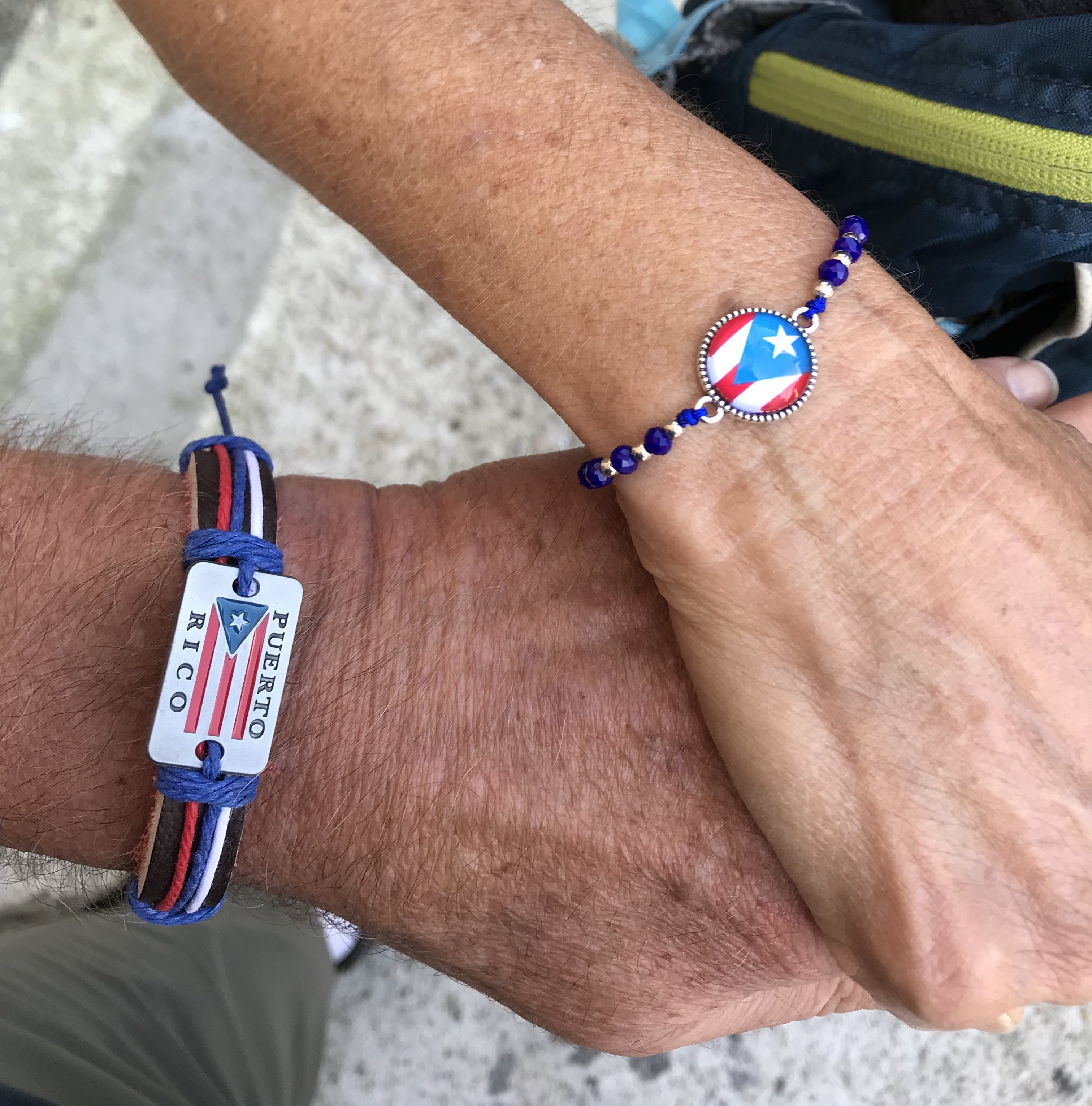 At lunch I heard a woman exclaim Ay Dios Mio!, just like my Puerto Rican grandmother. I thought it was funny because we hadn’t heard the Spanish use it as a exclamation. Walking up the infamous hill we met a group of four pilgrims. There was the woman from the restaurant and guess where she was from? Puerto Rico. I knew I recognized that accent. After a wonderful conversation she and her husband presented us with bracelets.