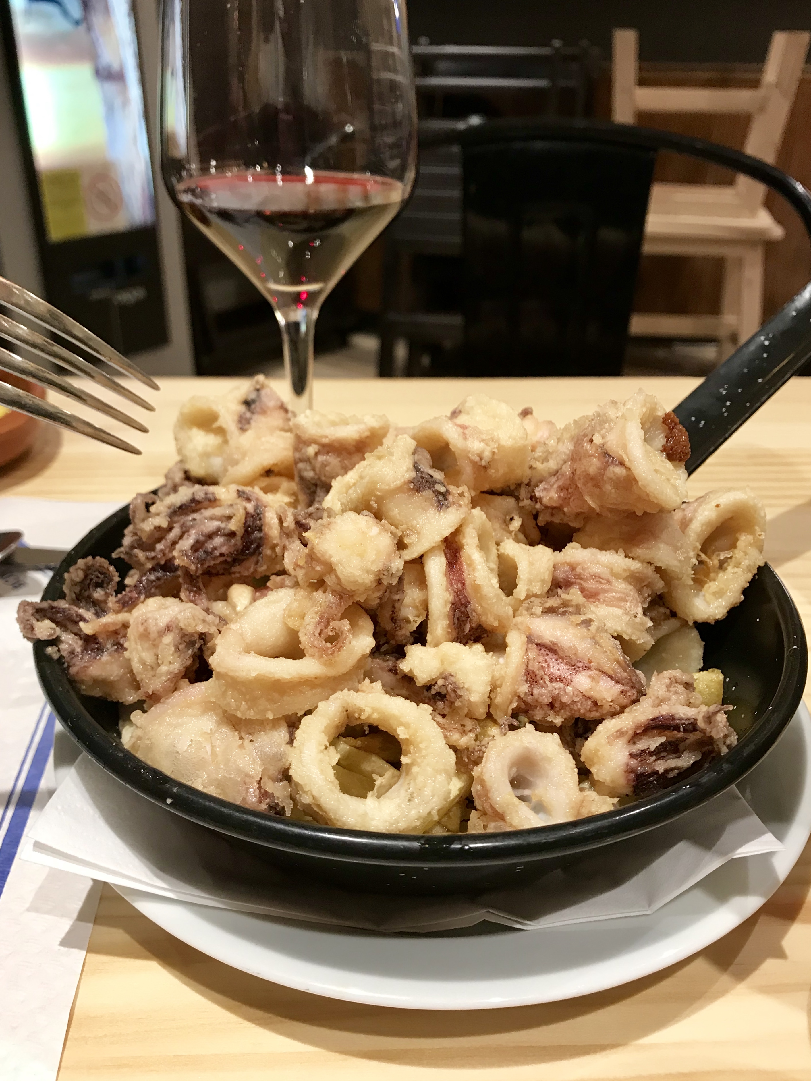 On this rainy evening in Santiago we indulged in comfort food at a nearby cafe. Potato tortilla, Caldo Gallego (my favourite cabbage and white bean soup) and chiperones (small calamari).