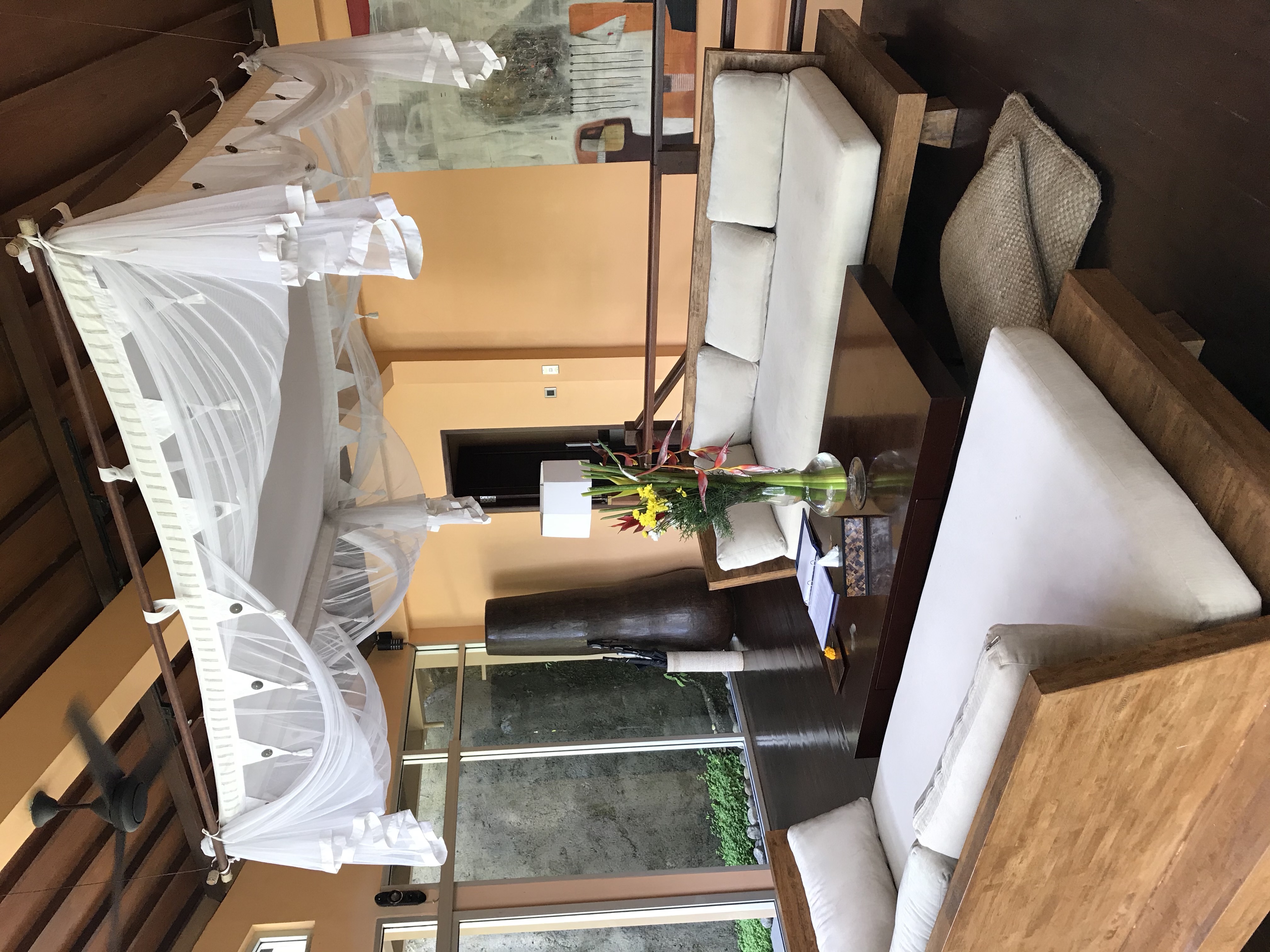 There is a restaurant type menu, and the staff cook your food to order. The fridge is filled with cold drinks, you help yourself and keep track of what you owe. We ate lunch to the hum of jungle cicadas and tree frogs. At least we didn't see the golden orb spiders we found in town, harmless, but including legs, the size of your hand.