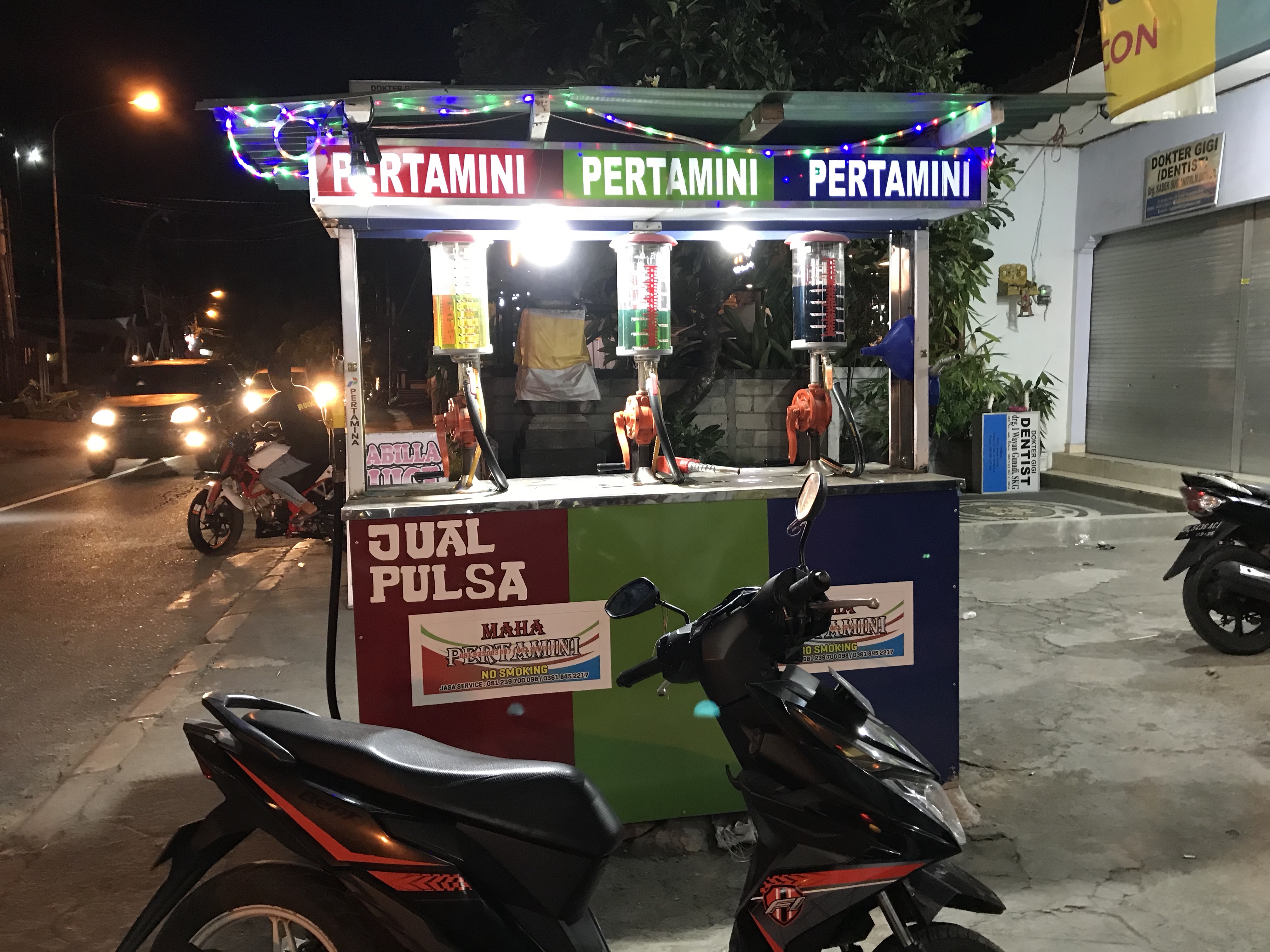It was rush hour in the city as we wove through the multitudes of motor scooters, some carrying entire families. Small scooters call for tiny gas stations.