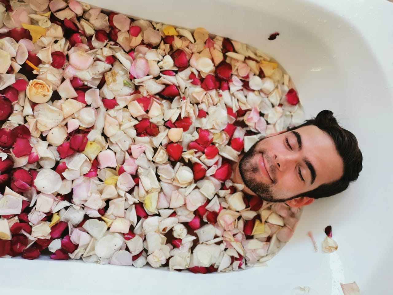On a brighter note, this week marked B's 30th birthday in Bali! How did that happen? He sweet girlfriend ordered in 40 kilos of rose petals and surprised him with a beflowered bath and pool: