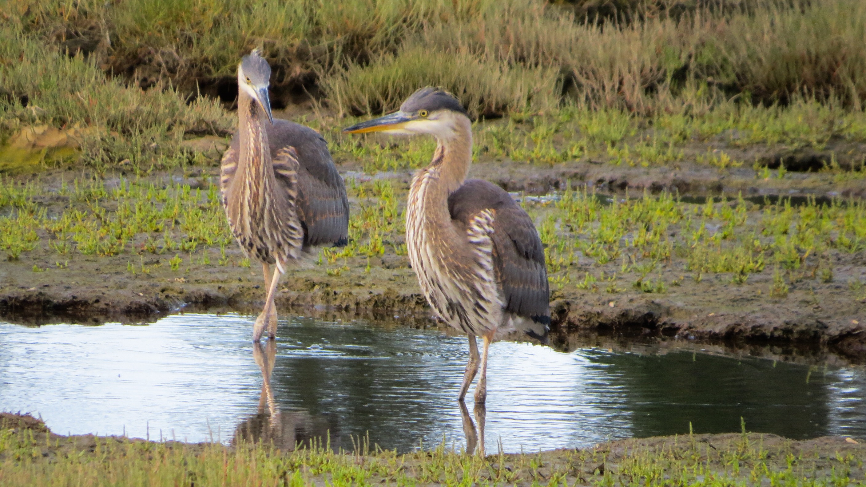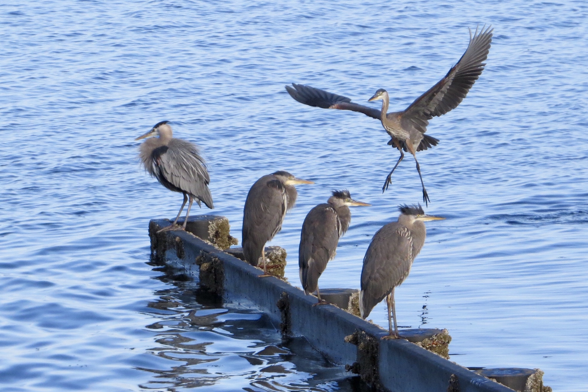 The early bird gets the fish. Herons by the dozens hang out at their favourite hunting waters.