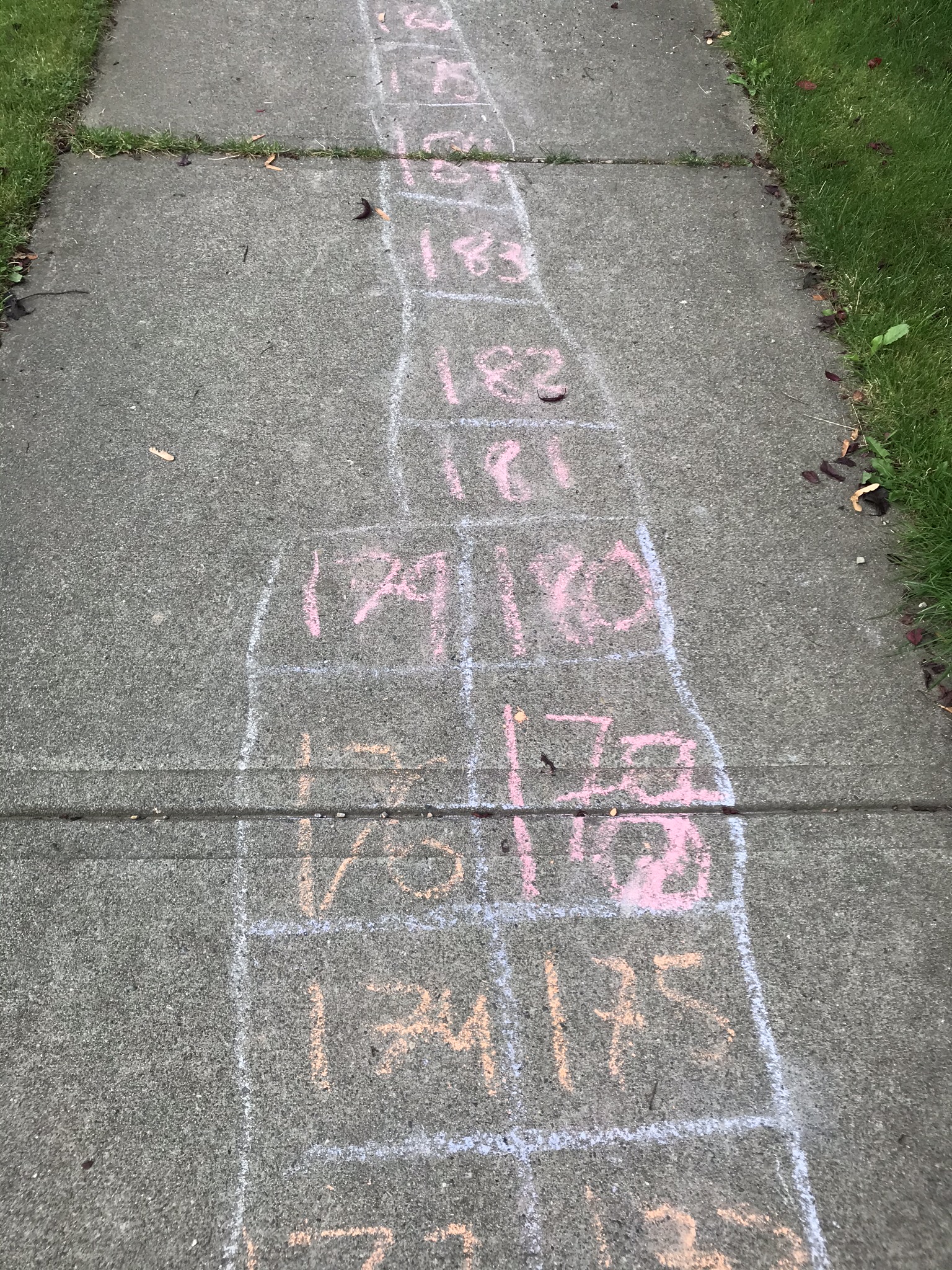 Neighbourhood Covid hopscotch is now almost a block long. I think it was up to 250.