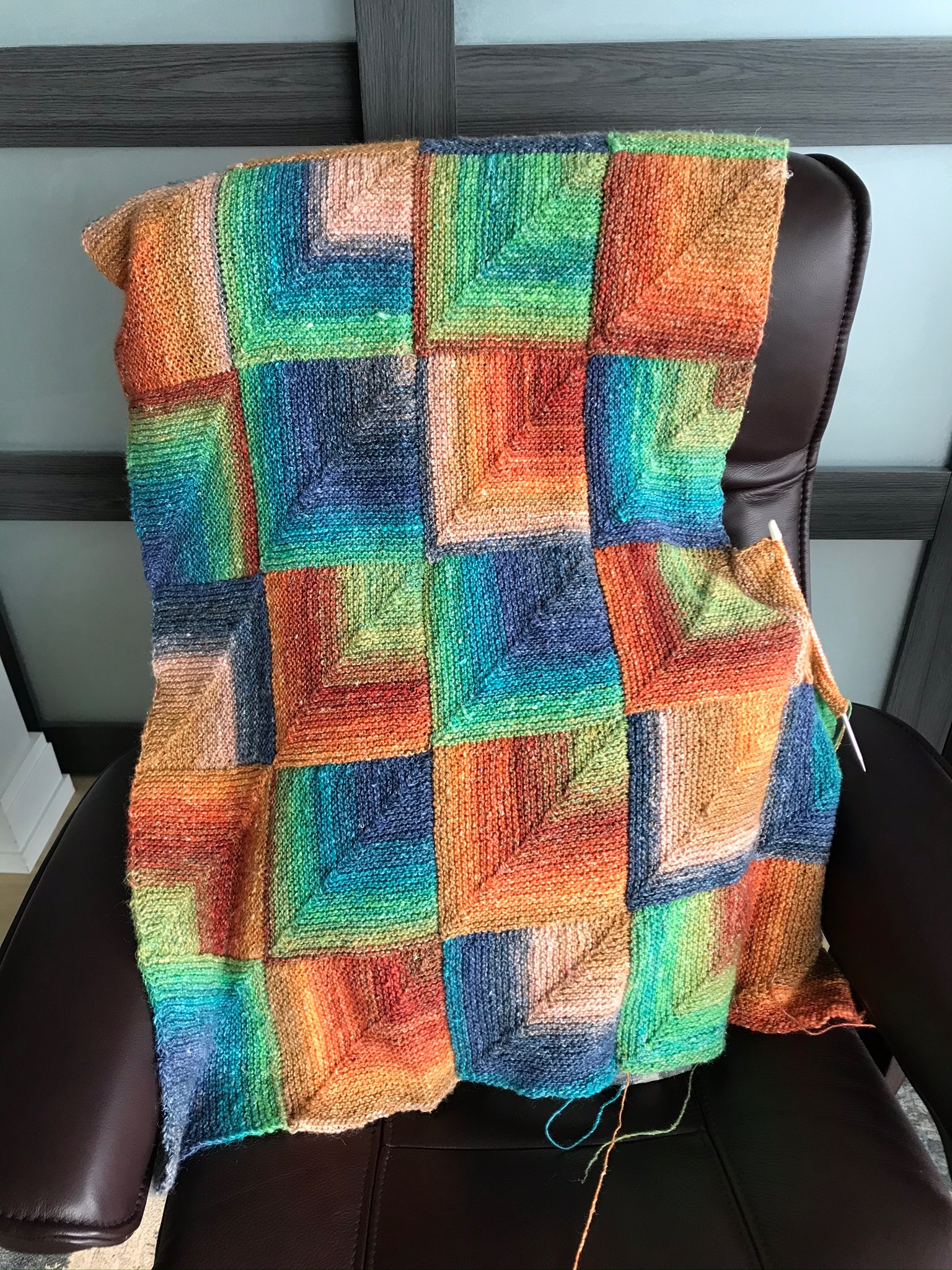 Another row of squares has been completed on the pandemic blankie: