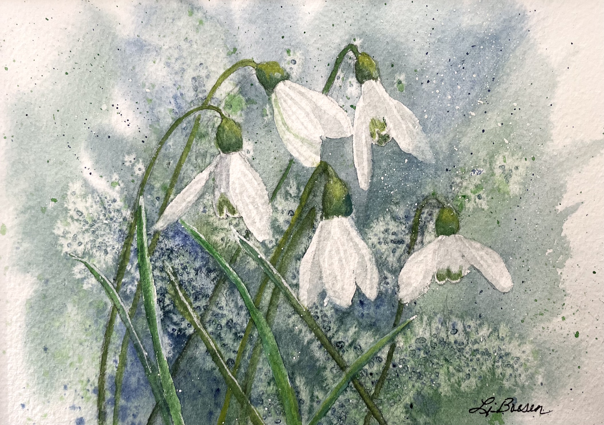 And today, the harbinger of spring – snowbells blooming. I had to come home and paint them.