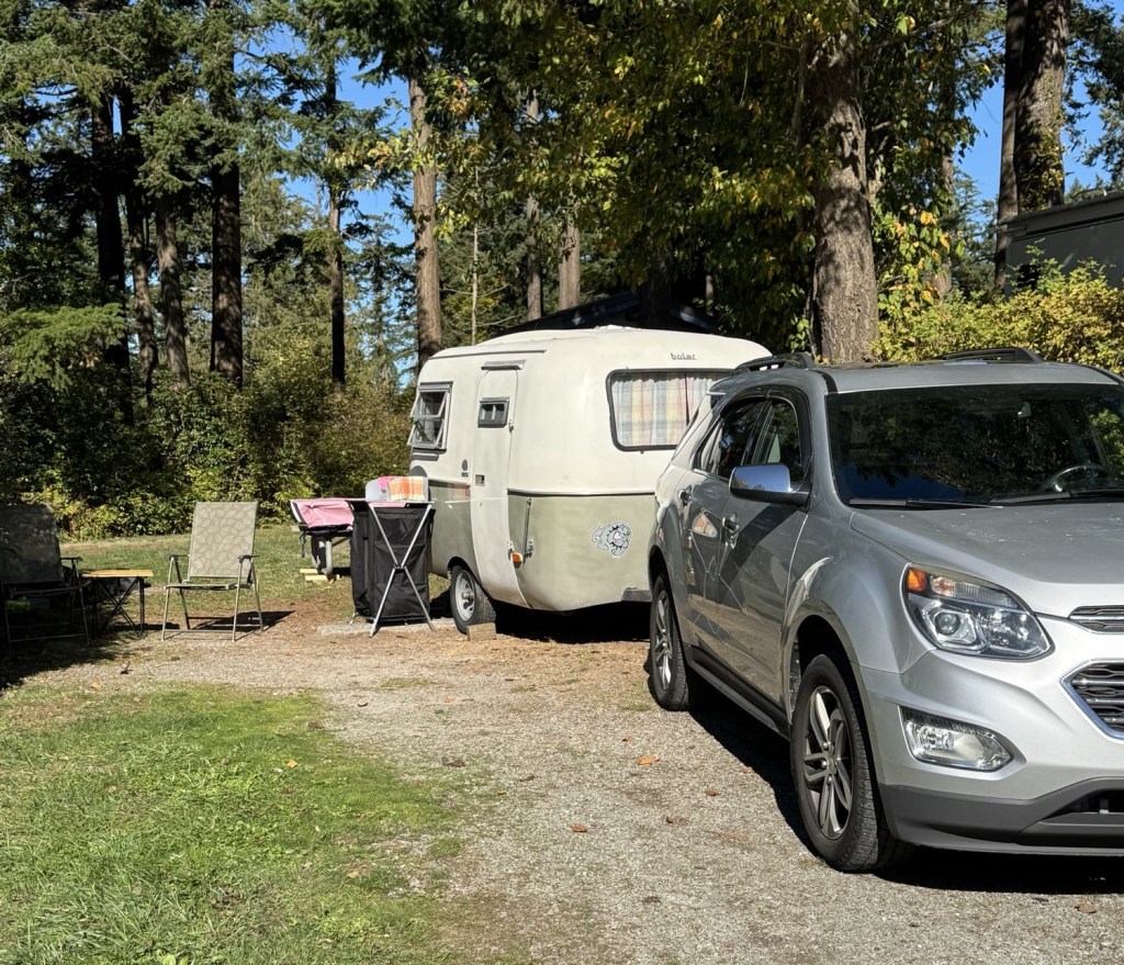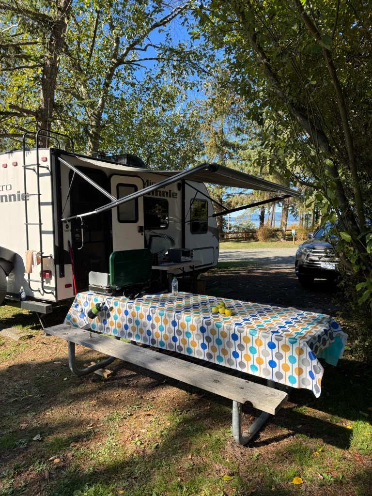 It was Canadian Thanksgiving and off we went to Washington’s Bayview State Park, less than 90 minutes from home, pulling the trailer, plus the border line-up. Of course we stop for groceries on the US side to avoid questioning and searching re food. What you can and can’t bring over the border is a moving target depending upon the health of chickens and cows. Peppers, citrus and tomatoes are a hard no.
