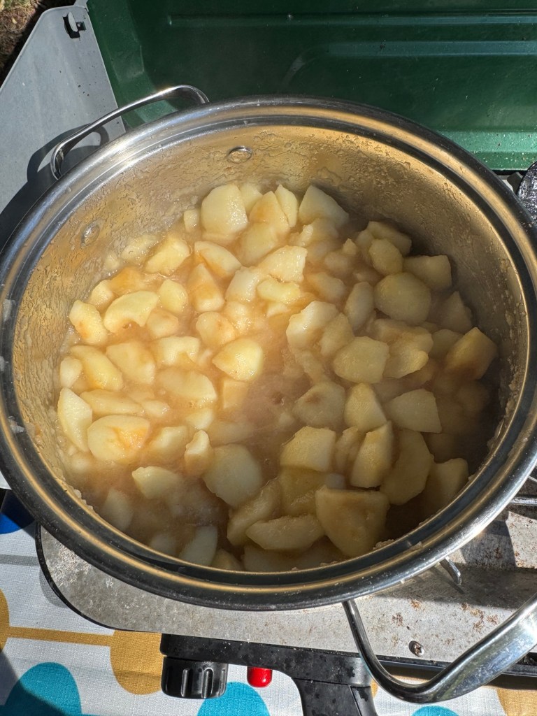 We had the opportunity to pick apples for some campsite maple spice applesauce to go with tonight’s pumpkin pie, both a vehicle for whipped cream.
