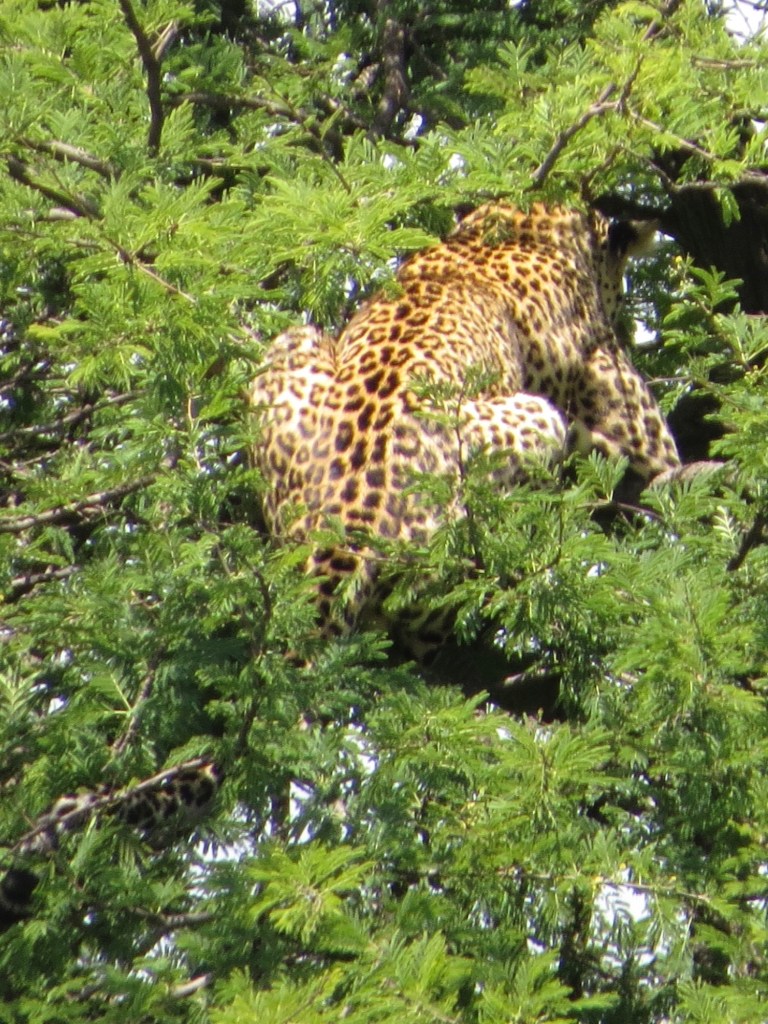 Steve caught a glimpse of a leopard sleeping in a tree.