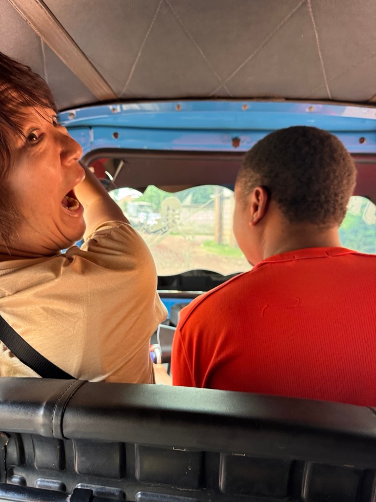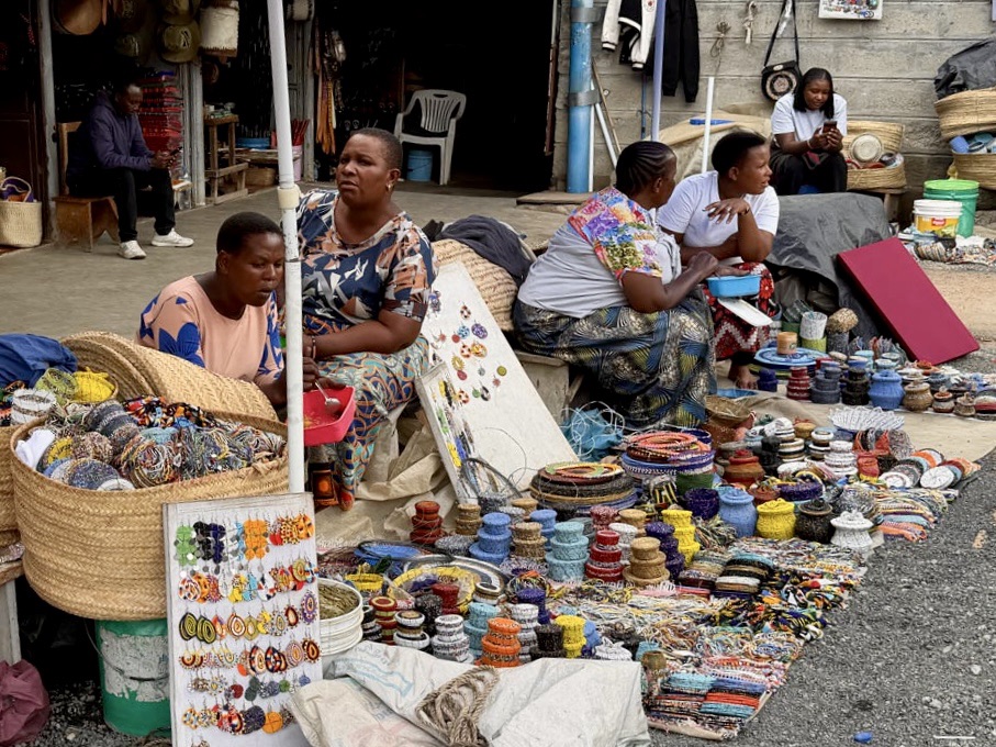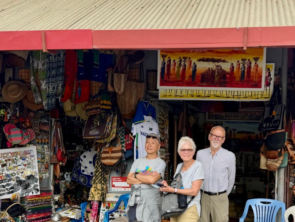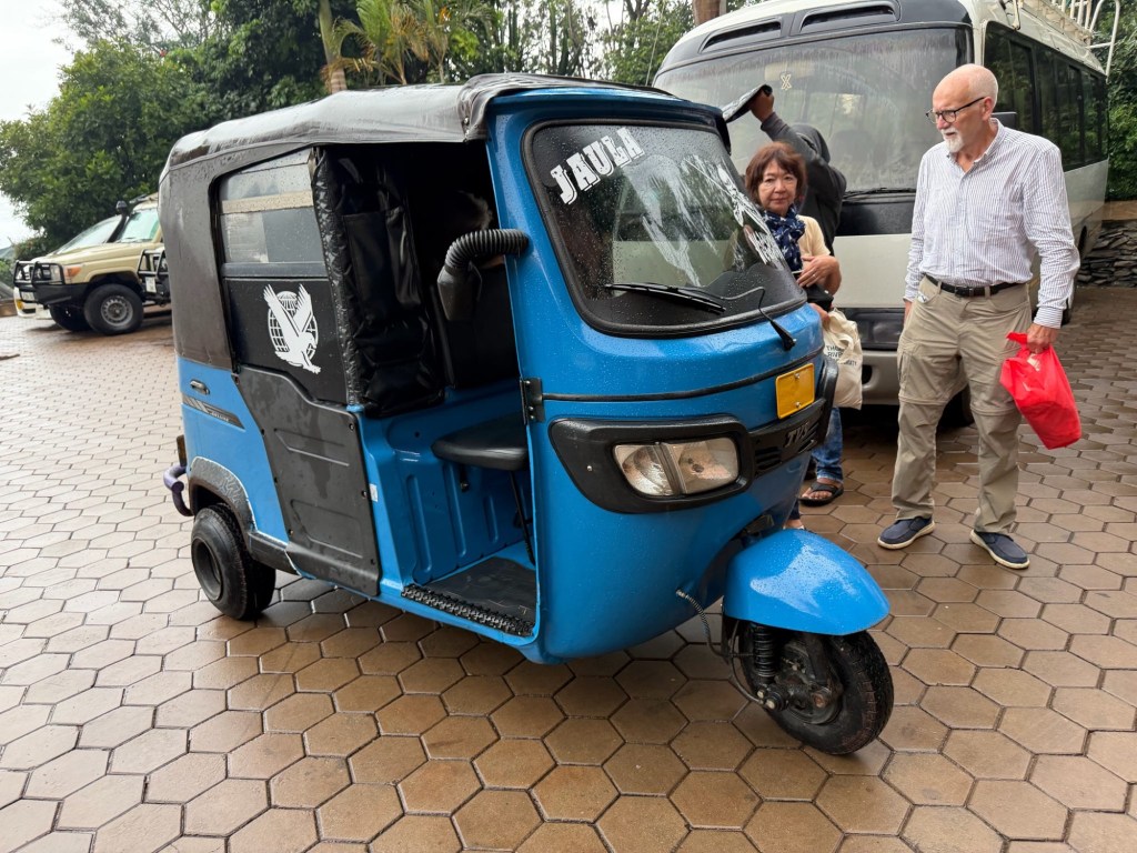 Our local agent arrived for orientation time. She was aware of our opinions regarding the location and offered to arrange a ride in the morning for us to go downtown Arusha to the Masai Market… by tuk-tuk. Four of us and the driver all in one tuk-tuk for a 25 minute drive each way for a total of $8US. Rika volunteered to sit shotgun.