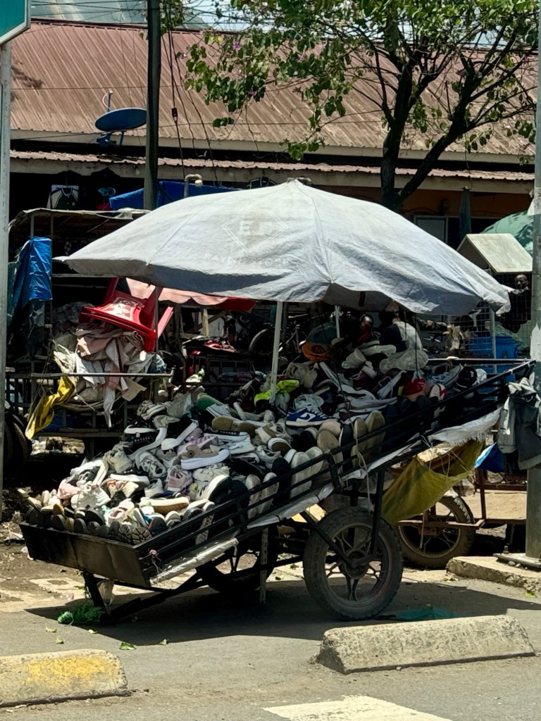 It was shopping day and we passed many displays of household goods and clothing.