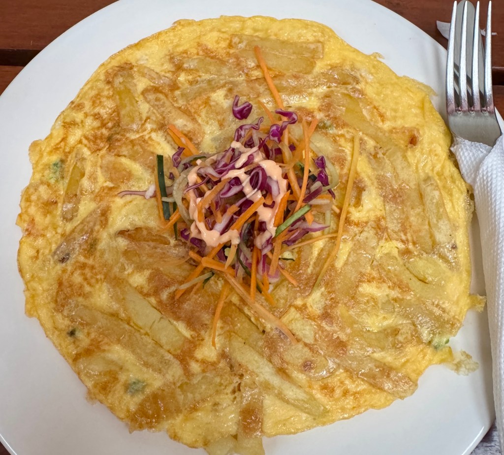 We waited a long time for the check in gate to open, then found our way to lunch. Finally I had the opportunity to eat a delicious chipsi mayai, a popular Tanzanian street food made with fries and eggs, similar to Spanish Tortilla (potato omelet).