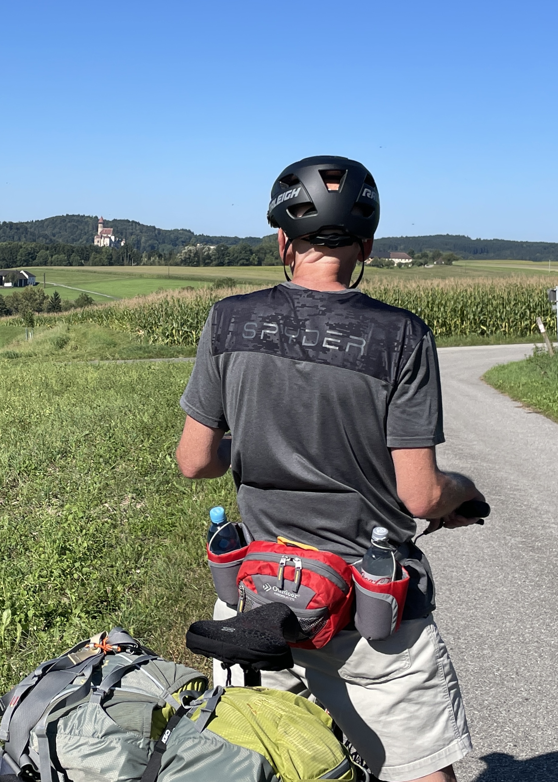 Laundry followed as we were only carrying two panniers and a medium backpack for eight days on the trail. There is something satisfying about hanging laundry on a hot breezy European day.